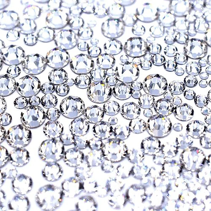 Serinity rhinestones Crystal Size mix contains round flat back crystals in a variety of sizes. Popular with nail technicians and embellishment artists, this mix is a cost effective way to purchase a selection of different crystals.