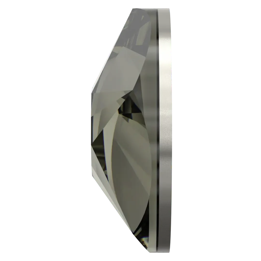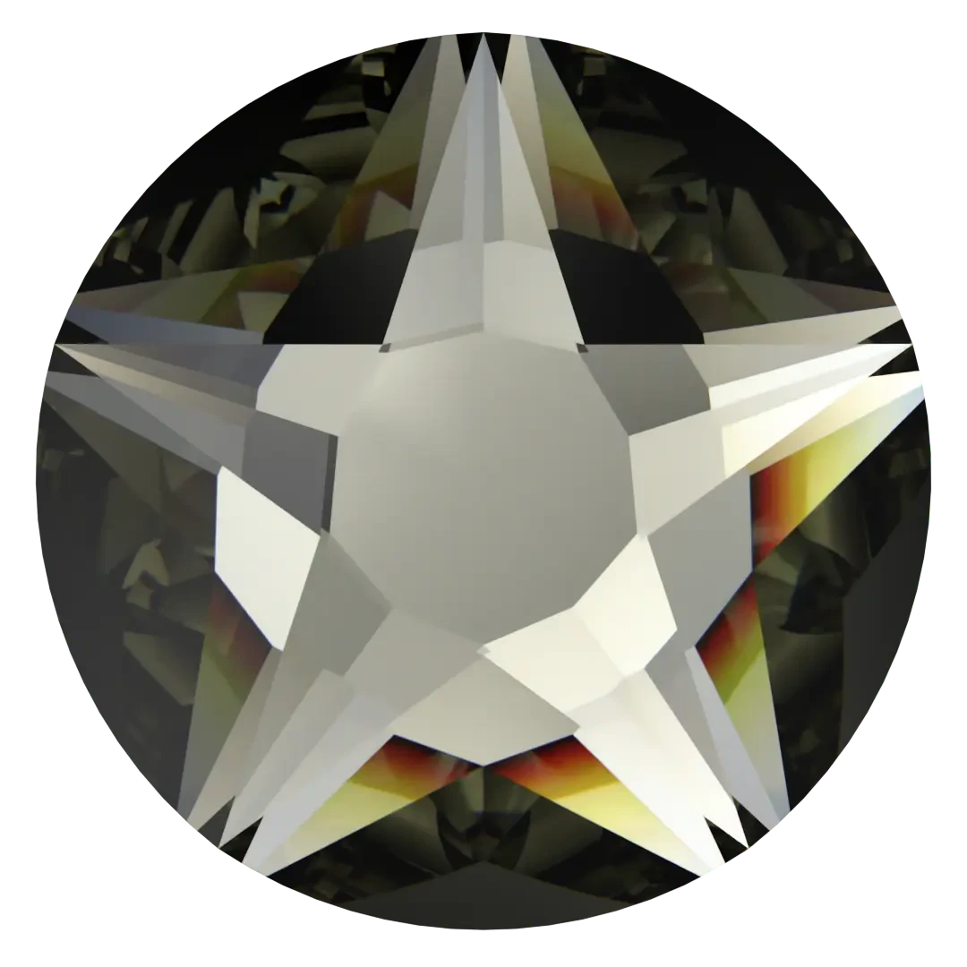 Serinity rhinestones non hotfix Star Rose (2100) in Black Diamond boasts a refined, star-shaped design on a circular base, offered in a variety of sizes identical to the round flat backs (2088). It shares all the advantages of easy handling, consistent tooling in production, cost-effectiveness, and a wide range of options.