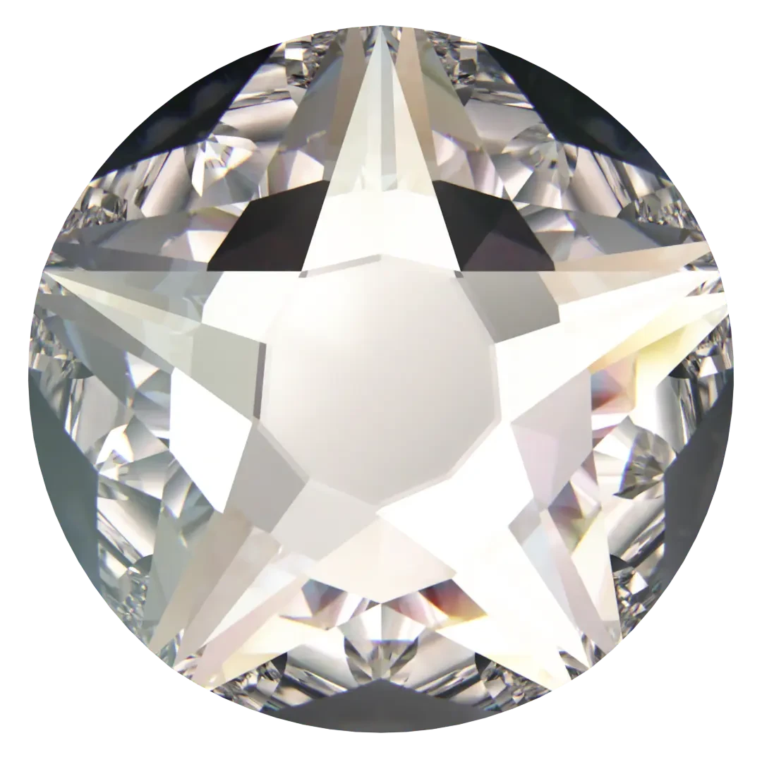 Serinity rhinestones non hotfix Star Rose (2100) in Crystal Moonlight boasts a refined, star-shaped design on a circular base, offered in a variety of sizes identical to the round flat backs (2088). It shares all the advantages of easy handling, consistent tooling in production, cost-effectiveness, and a wide range of options.
