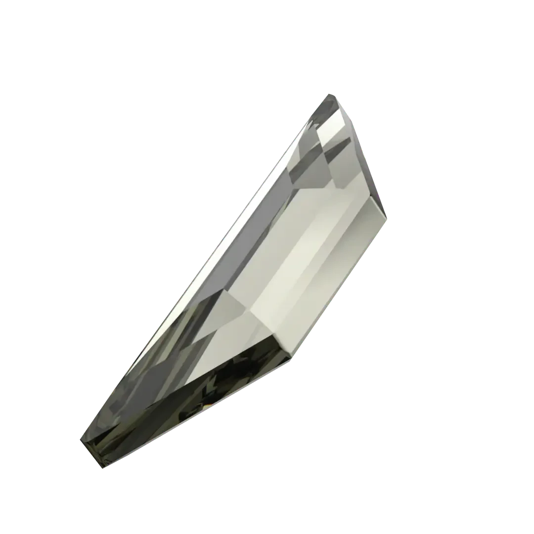 Serinity rhinestones non hotfix Trapeze (2772) in Black Diamond are flat back crystals that can easily be applied to most surfaces with glue. Serinity Trapeze shaped crystals are a contemporary and distinctive shape that showcases a trapezoidal silhouette. The shape is designed with bevelled and angled sides that taper towards the centre, resulting in a sharp and geometric appearance.
