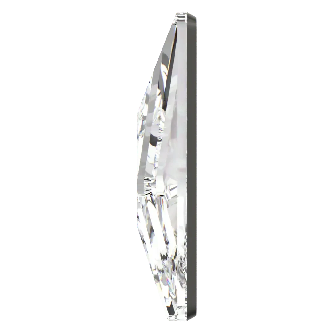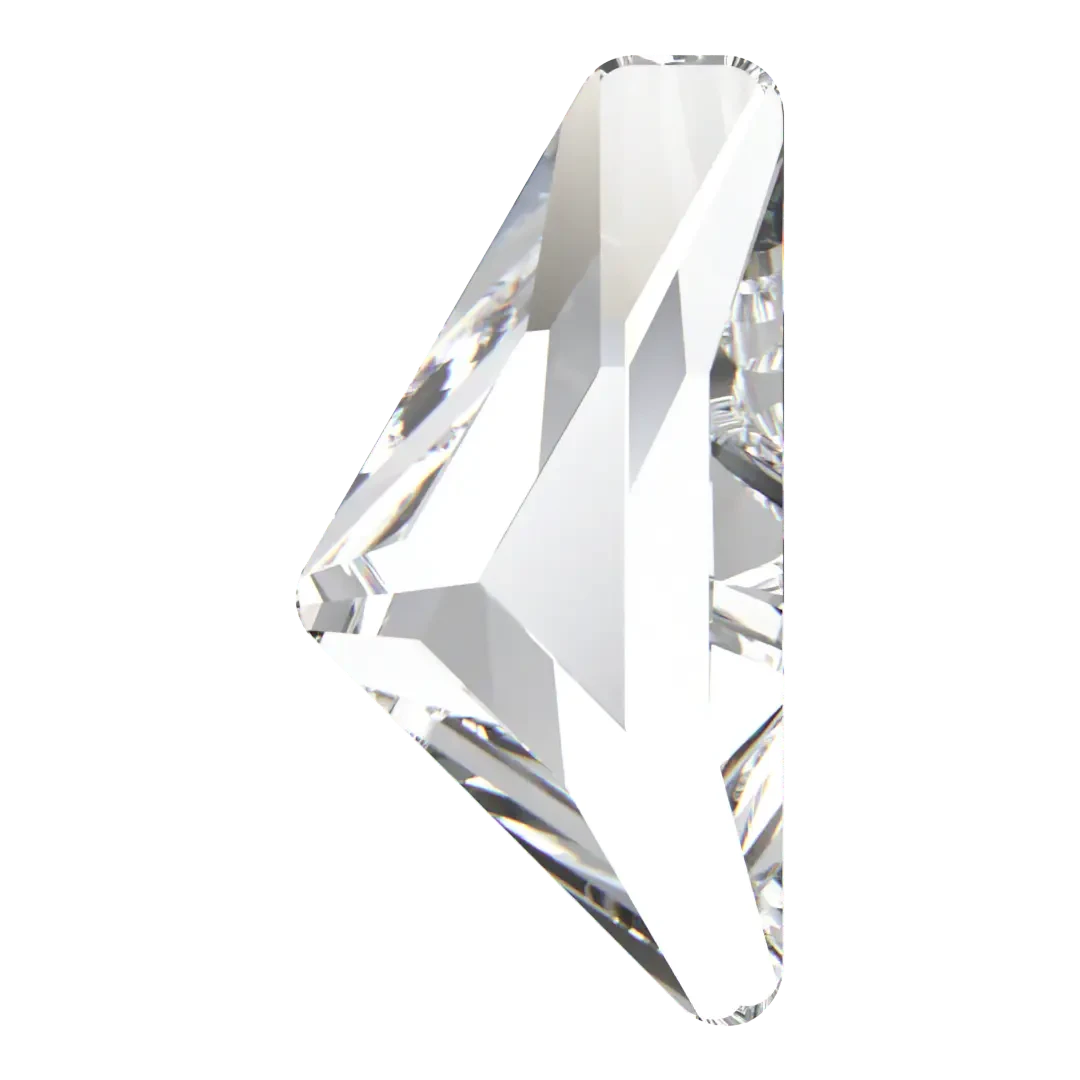 Serinity rhinestones non hotfix Triangle Isosceles (2738) in Crystal are flat back crystals that can easily be applied to most surfaces with glue. Serinity Triangle Isosceles shaped crystals are precision-cut with a unique faceting pattern on their surface, which rises to form a flat top. The triangular shape is distinctive, with one corner featuring a straight line instead of a rounded point, adding an interesting element to the design.
