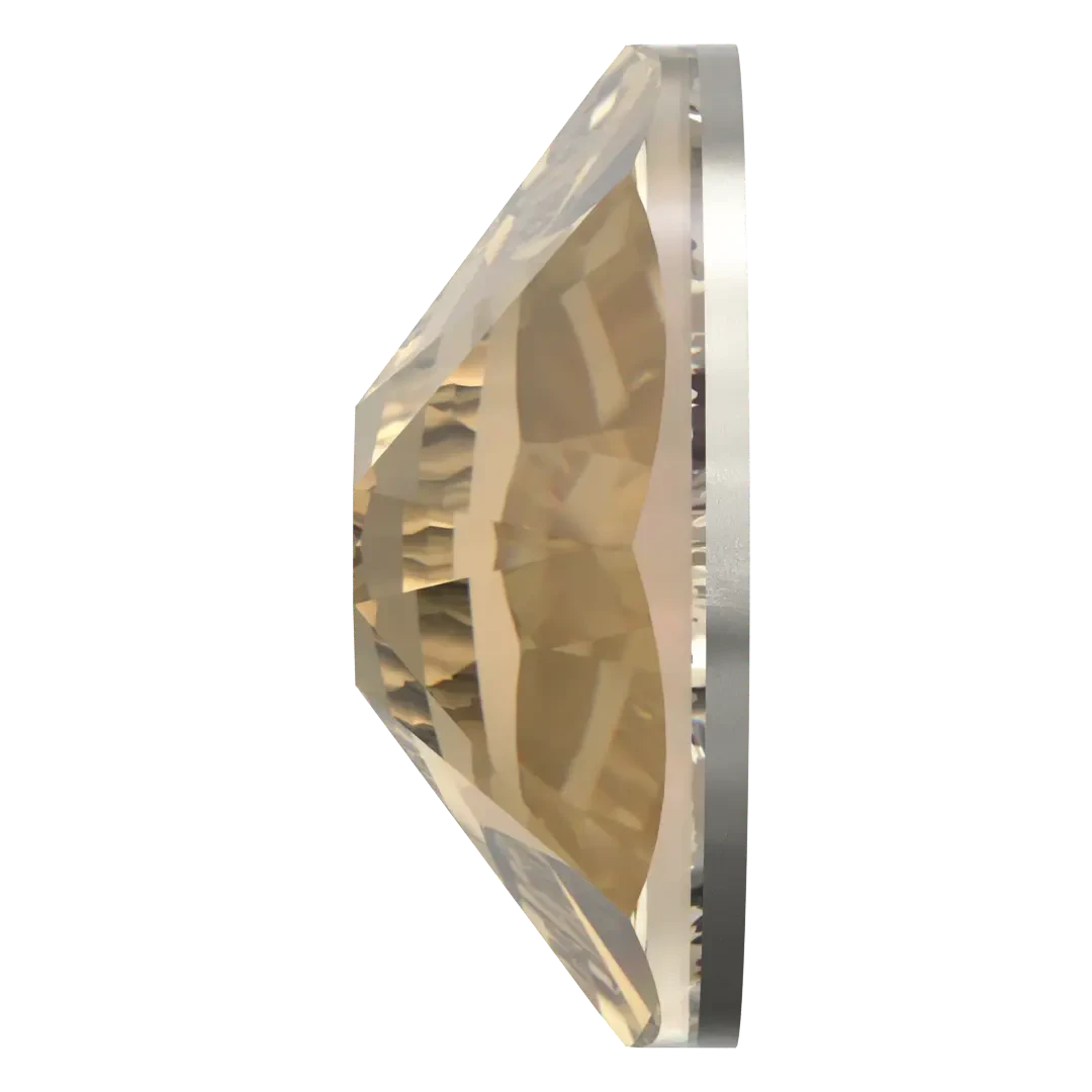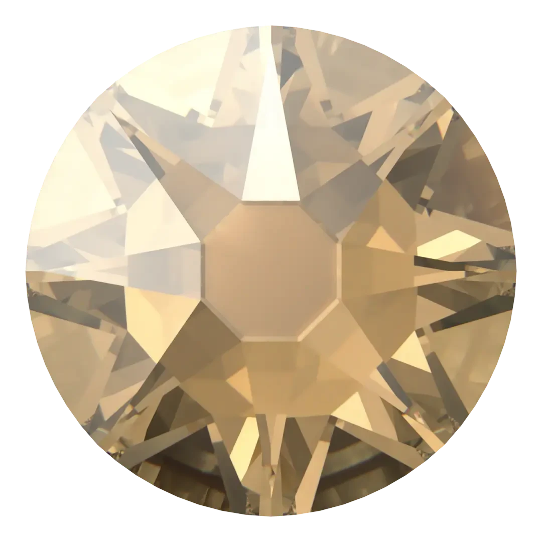 in Crystal Golden Shadow are flat back crystals where the reverse side of the crystal has been pre-coated with a heat-sensitive glue. Crystal Golden Shadow is a colour that is commonly used in the fashion and nail art industries. It is a pale, warm champagne colour with hints of pale gold. Crystal Golden Shadow is a versatile colour that can be used to add a touch of elegance and sophistication to a variety of designs, from clothing and accessories to dance wear. The exact shade of “Golden Shadow” may vary slightly depending on the lighting conditions, but it generally has a soft, shimmery appearance that can add a subtle but eye-catching element to any design.