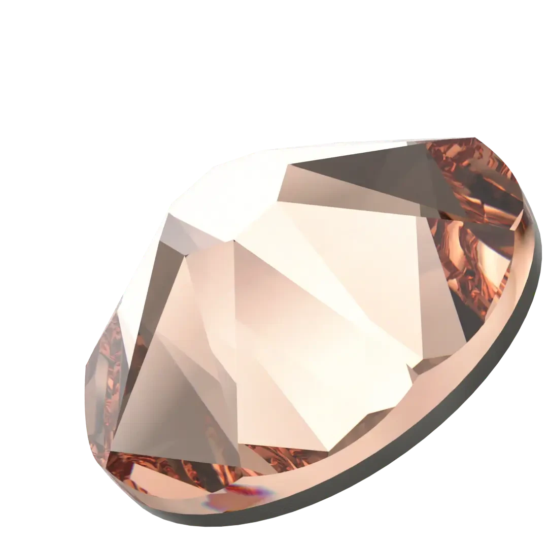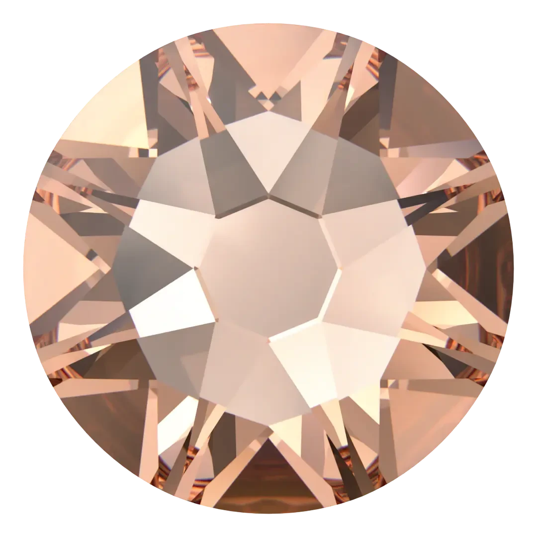 in Light Peach are flat back crystals where the reverse side of the crystal has been pre-coated with a heat-sensitive glue. Light Peach is a soft and delicate pastel colour that is similar to the colour of a ripe peach fruit. It is a warm and subtle shade that combines elements of pink, orange, and yellow. The colour Light Peach is typically a pale or light tone, and is a versatile colour that can be used in a variety of design contexts, from fashion and interior design to costume design and jewellery making. Light Peach can evoke feelings of warmth, comfort, and femininity. It is often used in spring and summer fashion collections, as well as in wedding and event decor.