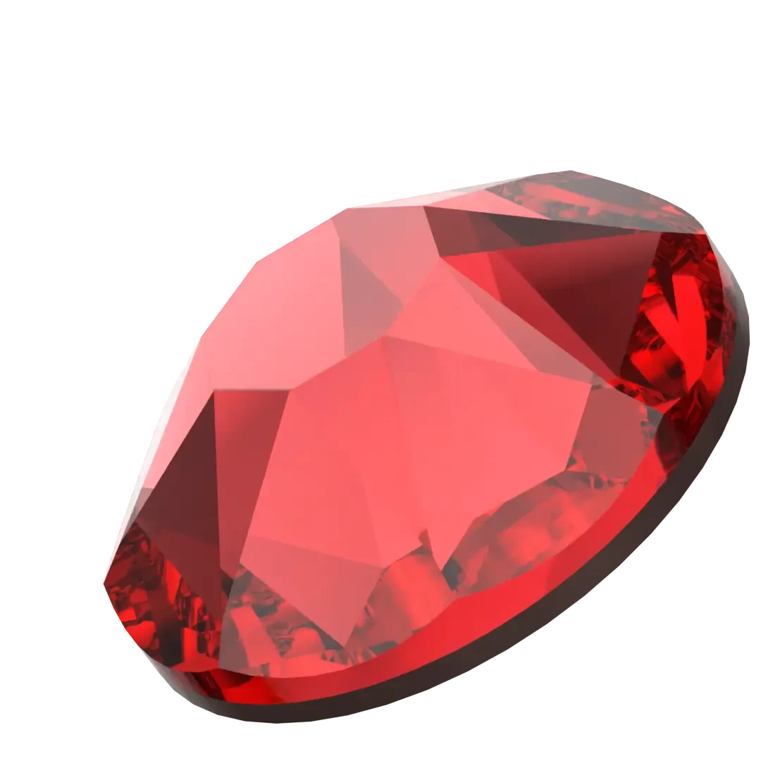 in Light Siam are flat back crystals where the reverse side of the crystal has been pre-coated with a heat-sensitive glue. Light Siam is a shade of red with a slight pink undertone that is reminiscent of the gemstone ruby. It is a bright and vibrant colour that is often associated with passion, energy, and strength. Light Siam is a popular colour in fashion and accessories, particularly for evening wear and special occasion pieces. It can also be used in nail art to create a dramatic and eye-catching look. Light Siam is a striking and powerful colour that can add a touch of drama and intensity to any design project.