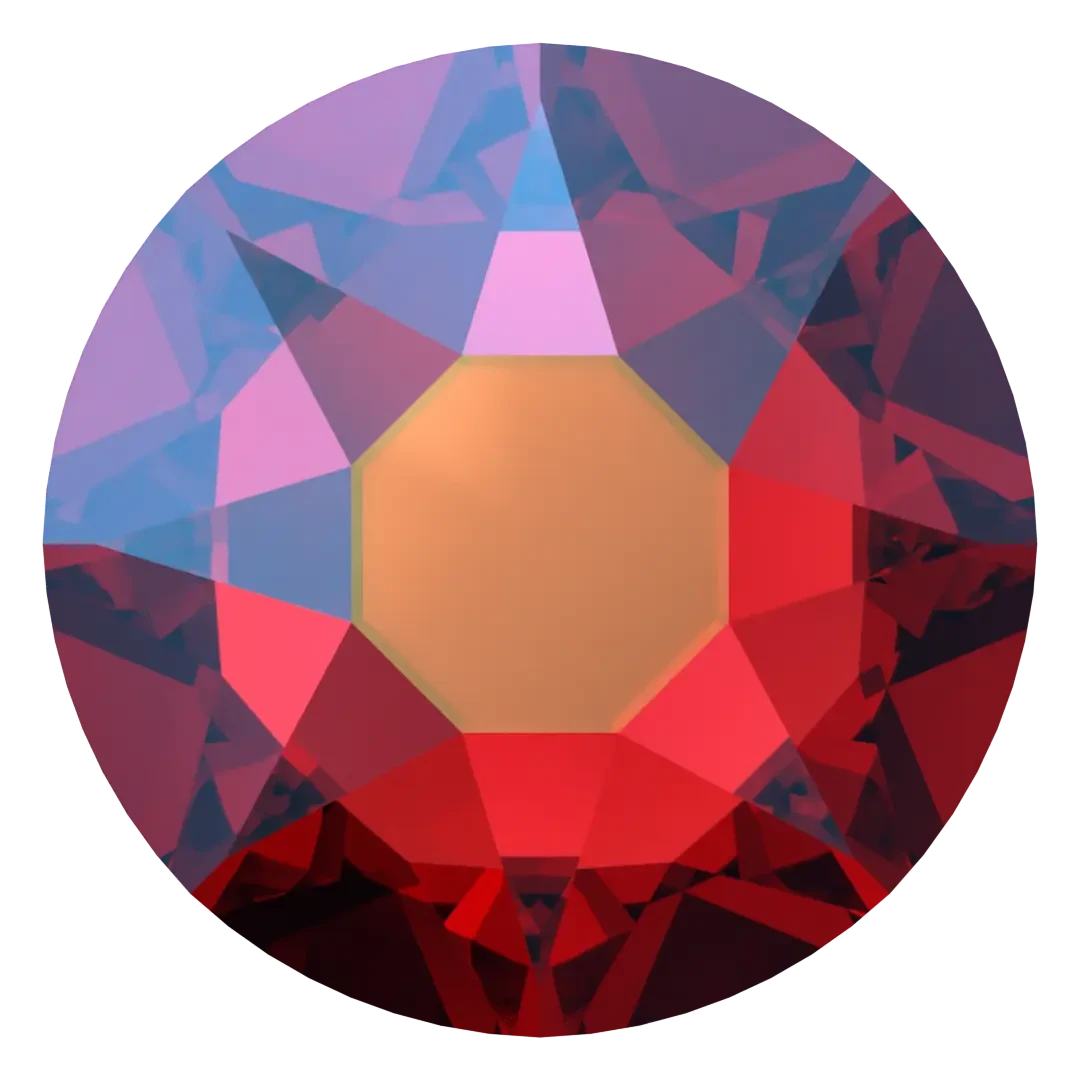 in Light Siam Shimmer are flat back crystals where the reverse side of the crystal has been pre-coated with a heat-sensitive glue. Light Siam Shimmer is a vibrant and striking shade of red with a shimmering effect. It is named after the country of Siam, now known as Thailand, which was famous for its rubies. Light Siam Shimmer is a lighter and brighter version of the classic Siam colour, with a subtle shimmer coating that adds a touch of sparkle and glamour. This shade is often used in jewelry making and fashion design to create eye-catching pieces that make a bold statement.
