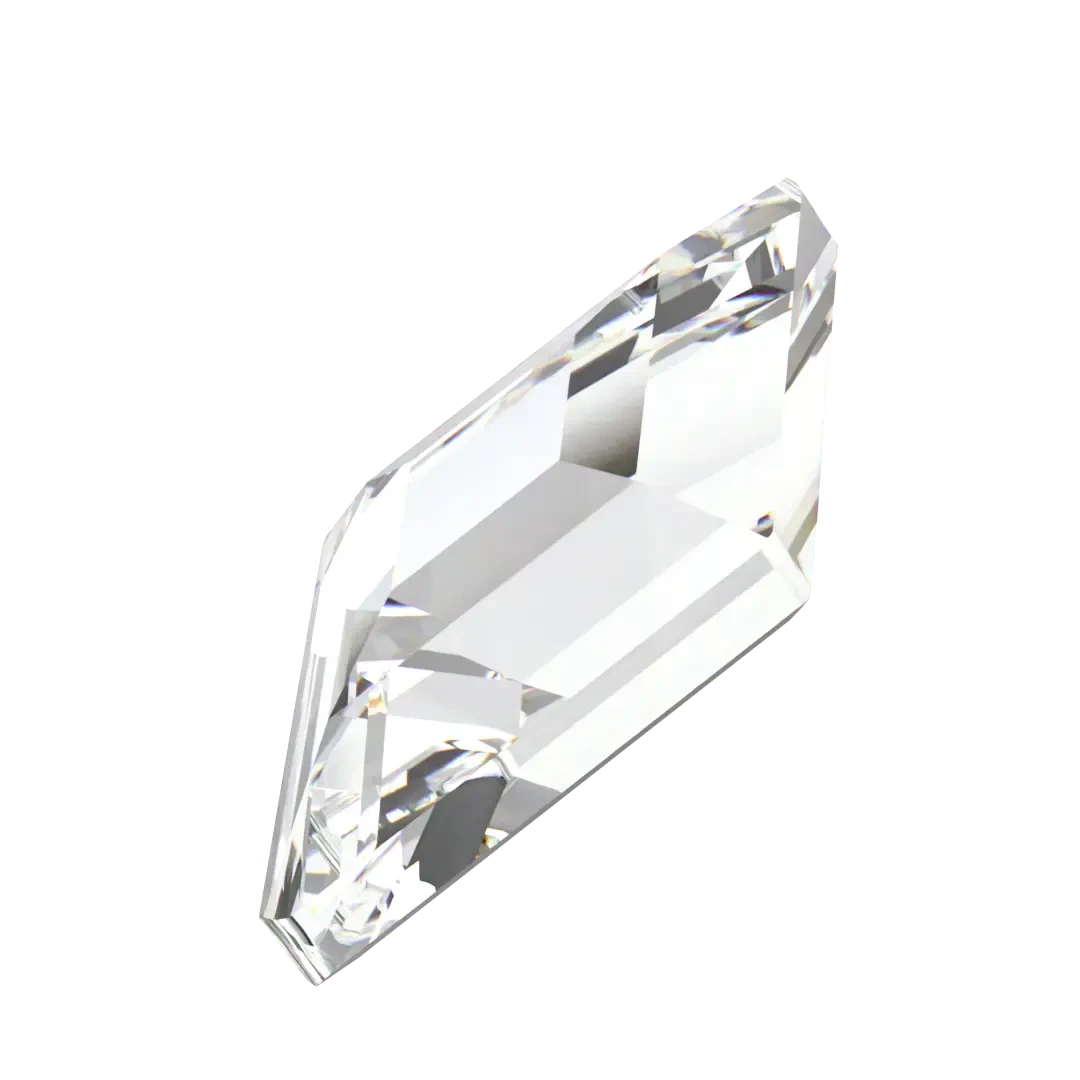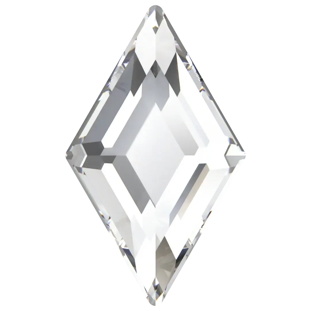 Serinity hotfix crystals Diamond (2773) in Crystal are flat back crystals where the reverse side of the crystal has been pre-coated with a heat-sensitive glue. Serinity Diamond shaped flat back crystals possess a precise and symmetrical diamond shape with a pointed top. These crystals are known for their ability to reflect light and create an eye-catching sparkle due to the specific arrangement of their facets.