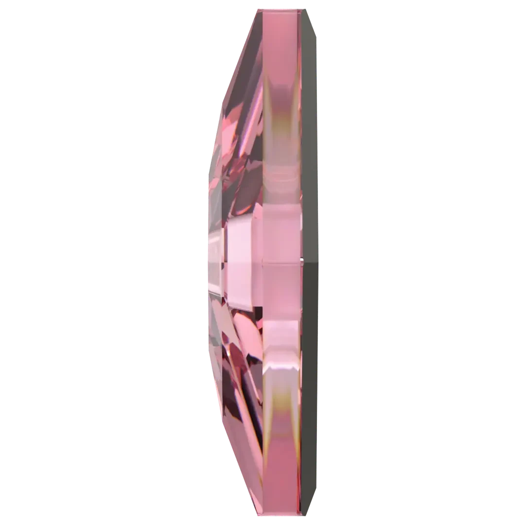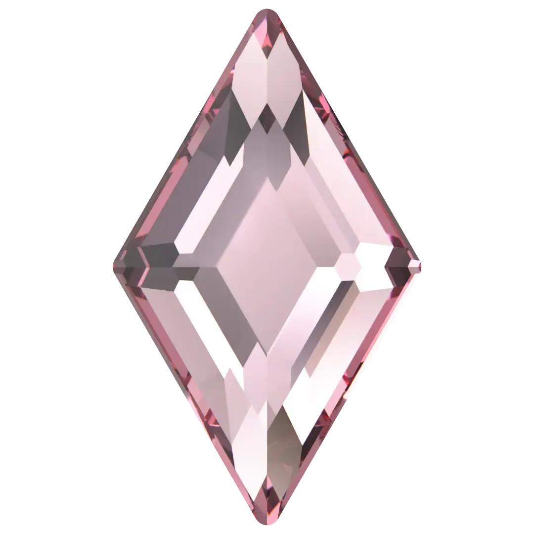 Serinity hotfix crystals Diamond (2773) in Light Rose are flat back crystals where the reverse side of the crystal has been pre-coated with a heat-sensitive glue. Serinity Diamond shaped flat back crystals possess a precise and symmetrical diamond shape with a pointed top. These crystals are known for their ability to reflect light and create an eye-catching sparkle due to the specific arrangement of their facets.