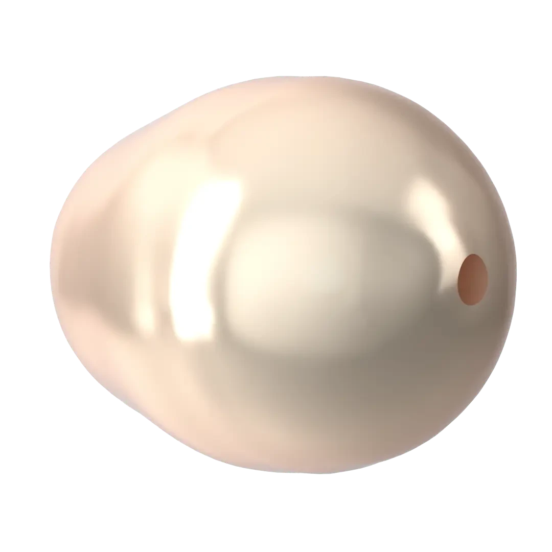 Serinity pearls Pear (5821) in Crystal Creamrose have a crystal ball core with a silky smooth coating, giving them the appearance of cultivated pearls. Serinity pear shaped pearls are traditional pear in shape and are characterized by their elongated body, rounded bottom, and tapering point at the top, similar to a pear fruit. They offer a distinct alternative to the more commonly seen spherical or round pearls.