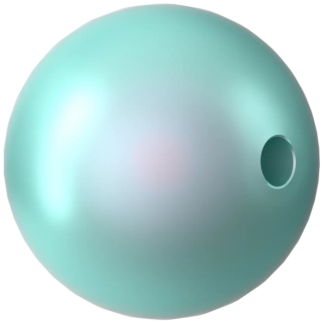 Serinity pearls Round (5810) in Crystal Iridescent Light Turquoise have a crystal ball core with a silky smooth coating, giving them the appearance of cultivated pearls. Serinity Round pearls are a type of artificial pearl made using a unique pearl coating that is applied to a crystal core. The result is a pearl with a lustrous finish that imitates the look of a genuine pearl.
