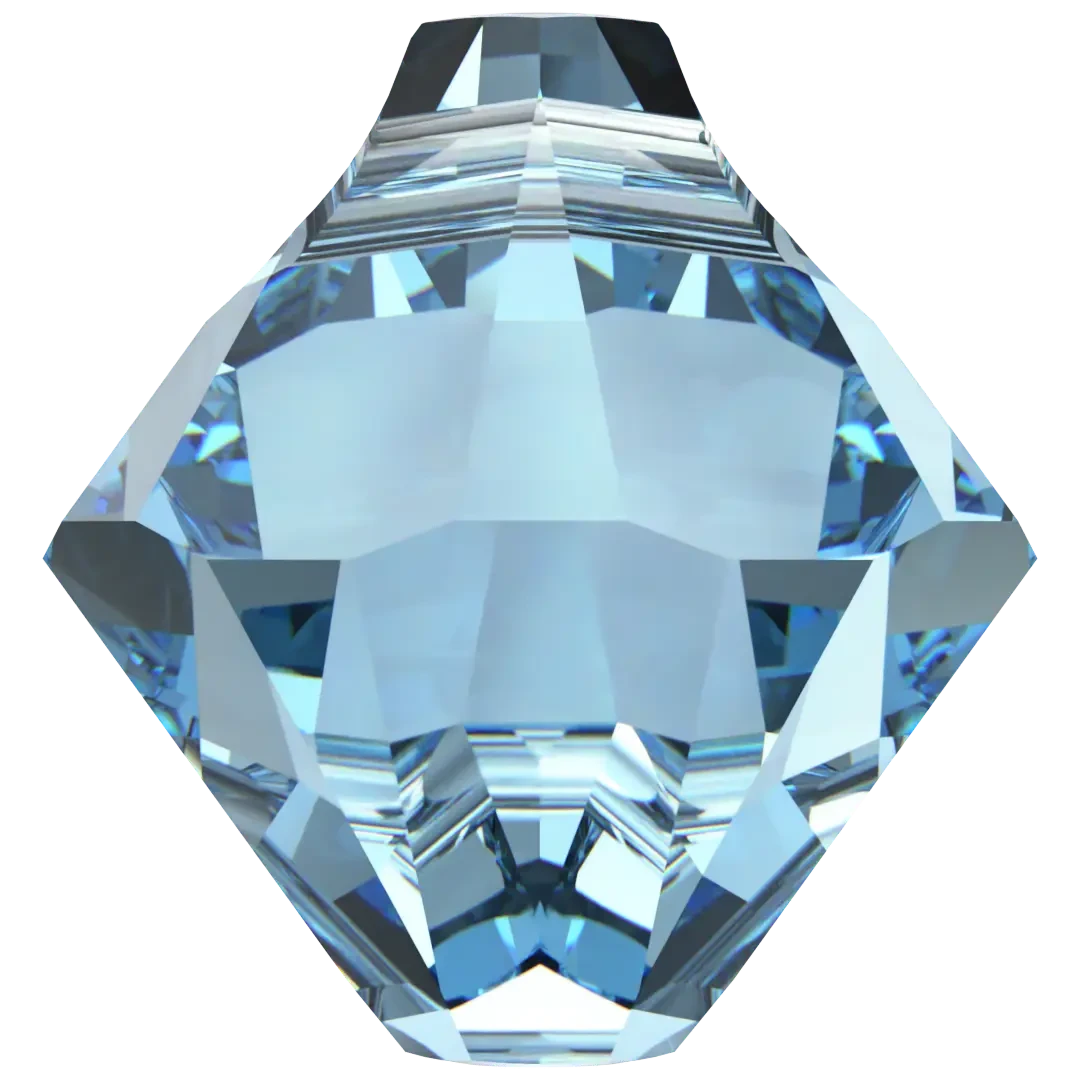 Serinity pendants Bicone Cut (6328) in Aquamarine are multi faceted crystals with a thread hole at the top enabling them to be attached to a chain or finding to create a piece of jewellery. Serinity Bicone Cut pendant has a distinctive bicone shape, characterized by its cylindrical body that tapers at both ends to form a bi-conical shape. The pendant’s tapered, multi-faceted design adds texture, depth, and a brilliant sparkle to any jewellery or bespoke design.