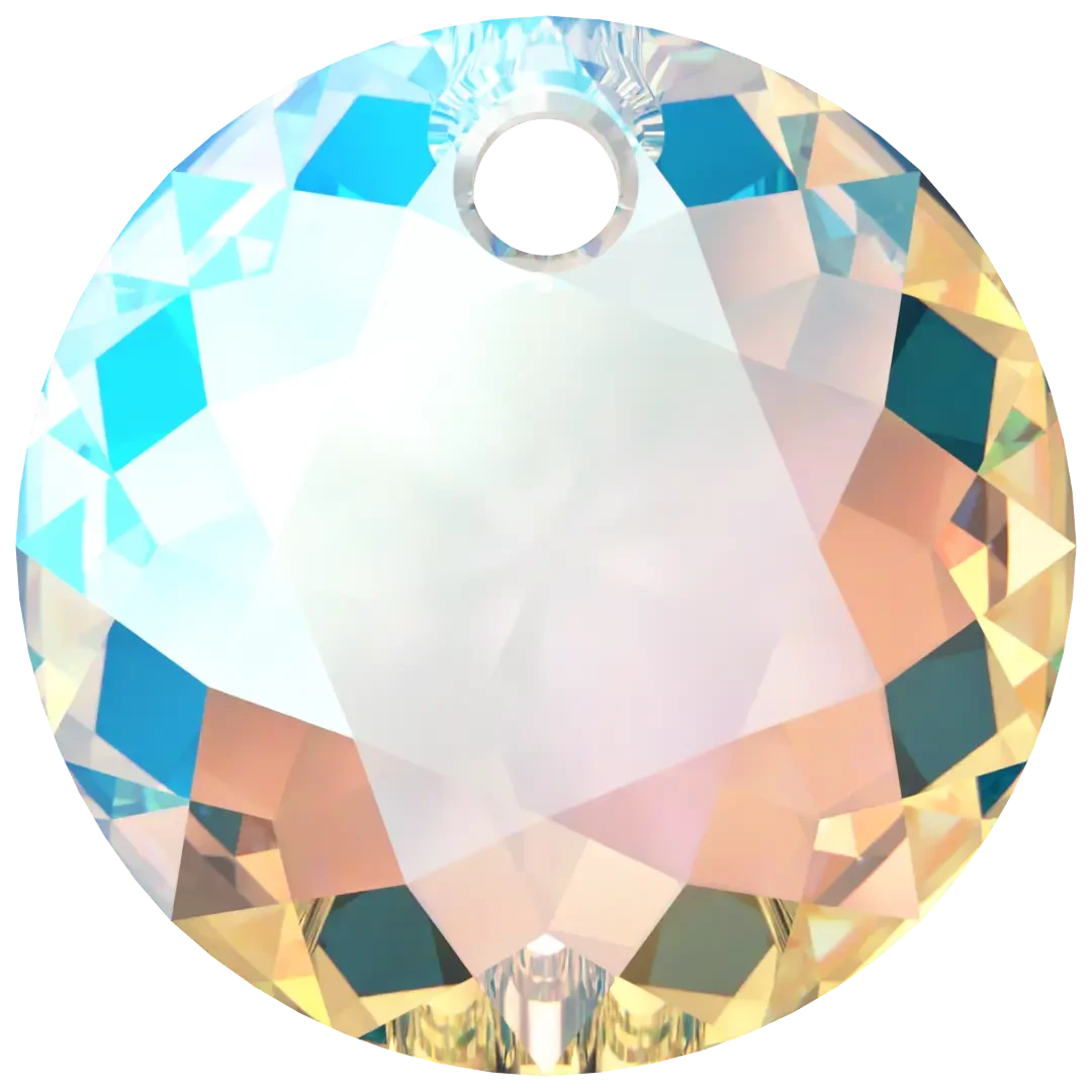 Serinity pendants Classic Cut (6430) in Crystal Shimmer are multi faceted crystals with a thread hole at the top enabling them to be attached to a chain or finding to create a piece of jewellery. Serinity Classic Cut crystal pendants have a circular shape with facets on both sides to capture and reflect the light magnificently. The facets of the crystal radiate from a flat centre on one side and a pointed centre on the opposite side.