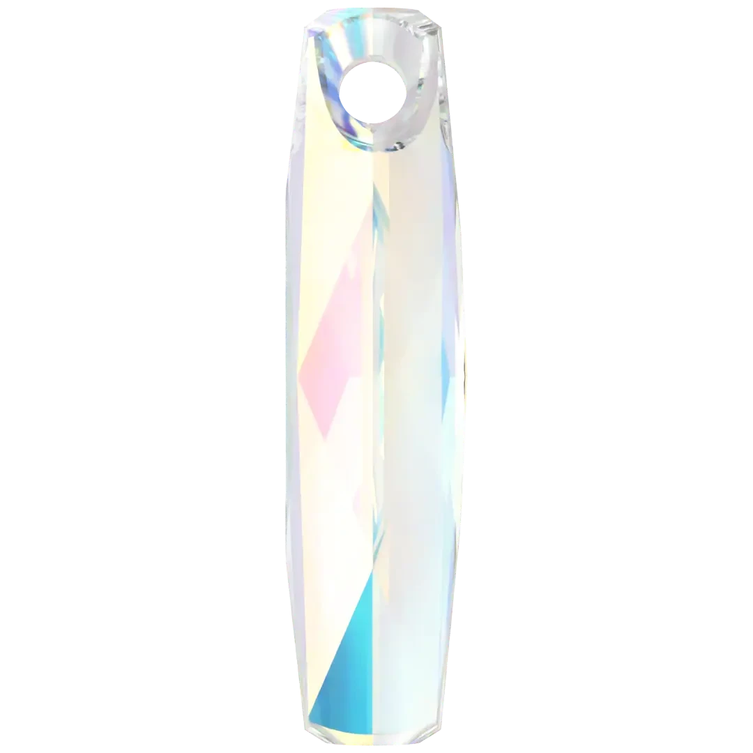 Serinity pendants Column (6460) in Crystal AB are multi faceted crystals with a thread hole at the top enabling them to be attached to a chain or finding to create a piece of jewellery. Serinity Column shaped crystals have an elongated and slender rectangular form. The column is adorned with multiple facets that capture and reflect light, creating a stunning and radiant display of light and colour.