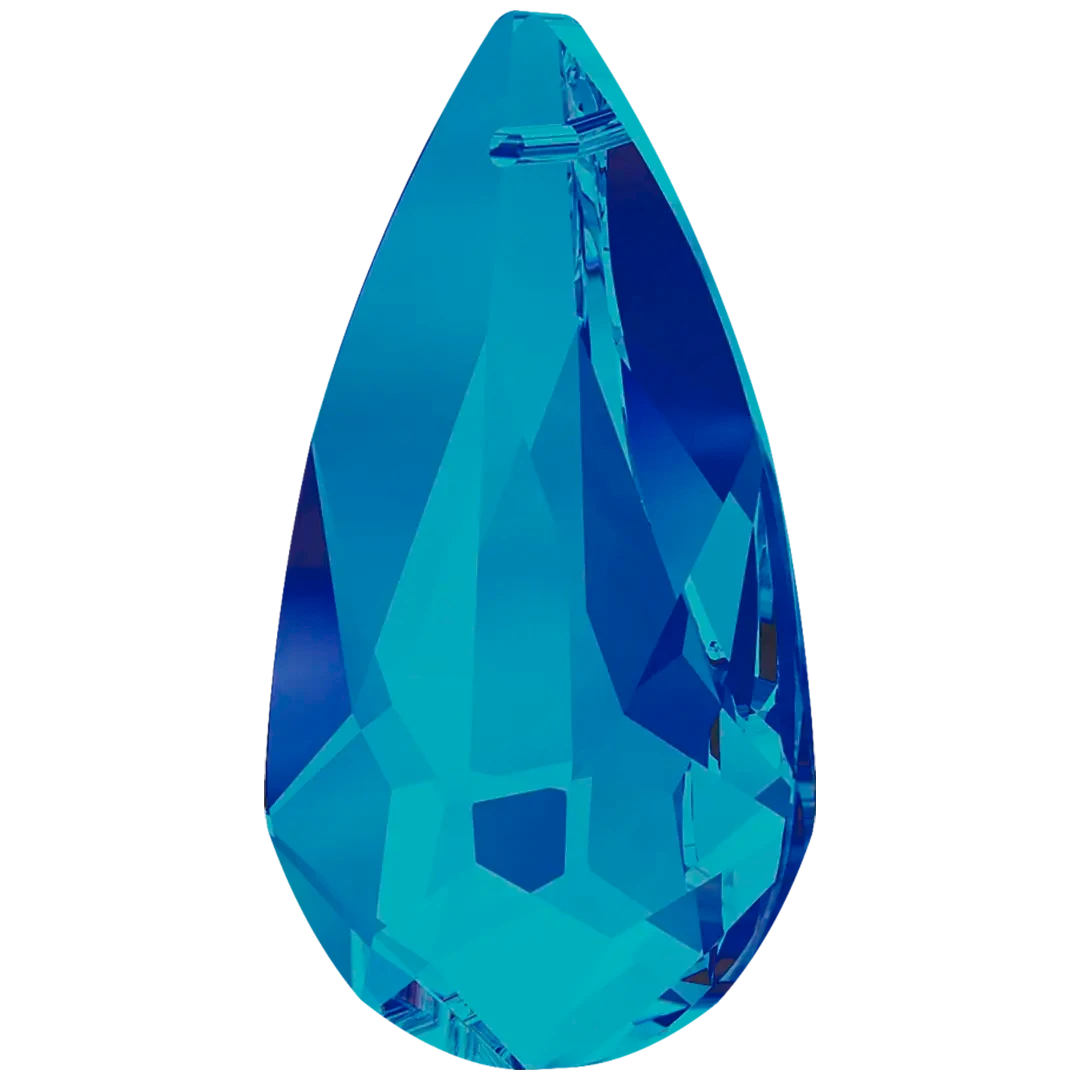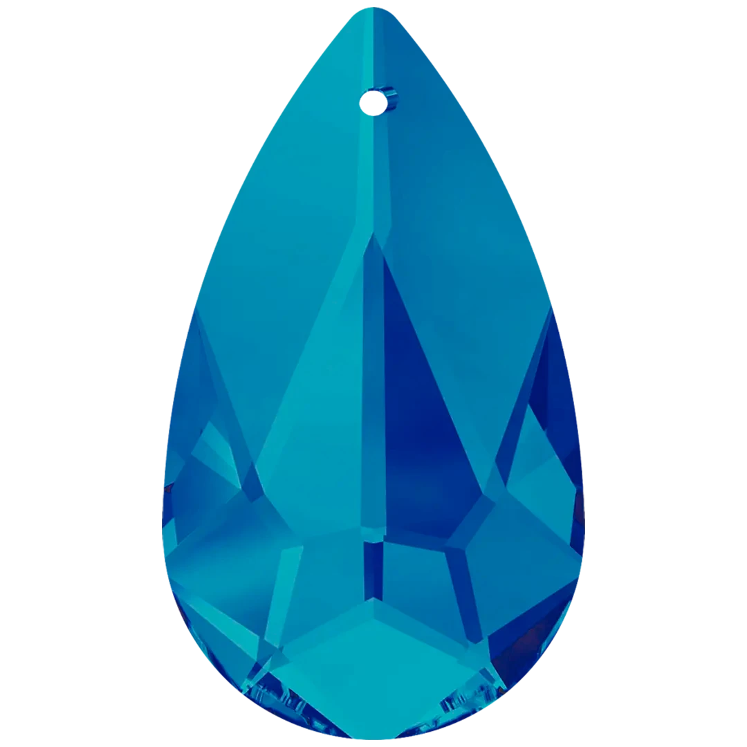Serinity pendants Elegant (6100) in Crystal Bermuda Blue are multi faceted crystals with a thread hole at the top enabling them to be attached to a chain or finding to create a piece of jewellery. Serinity Elegant pendant is a classic and timeless design with its elegant drop shape and precise faceting. This pendant exudes sophistication and offers endless possibilities for jewellery design.