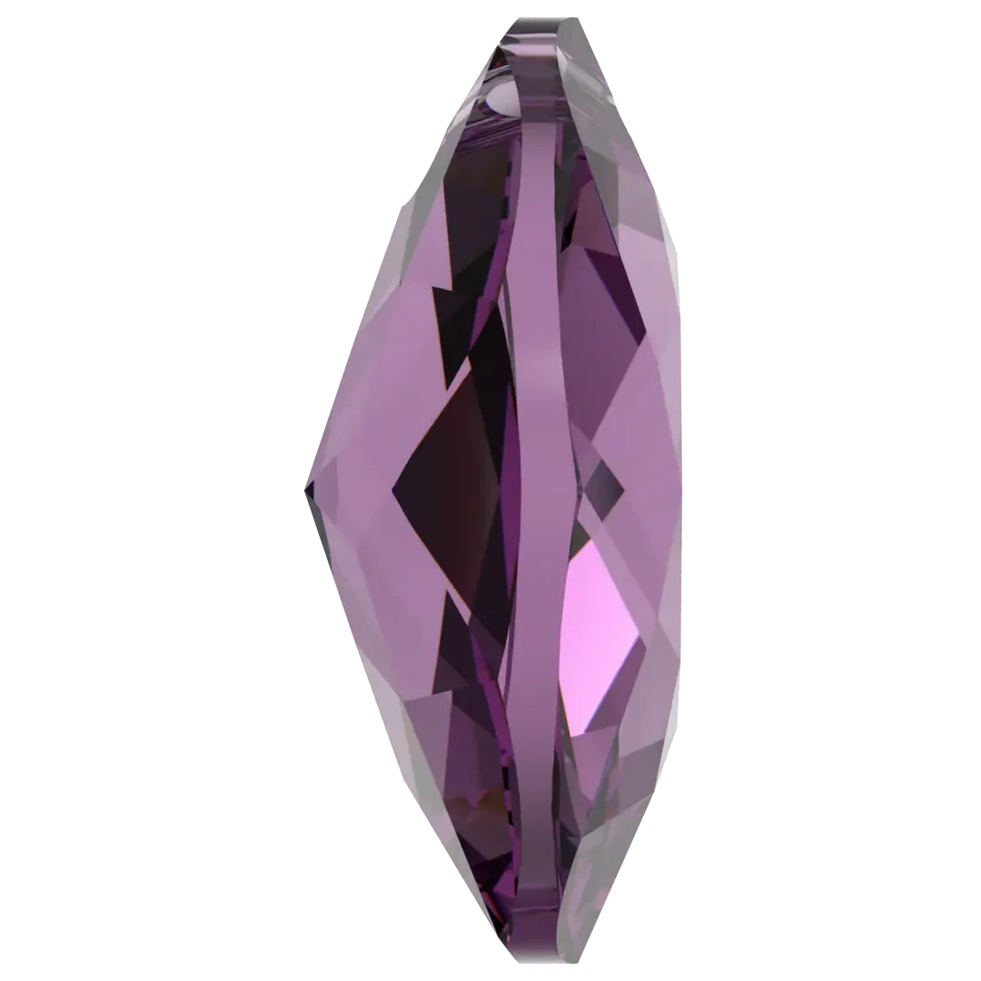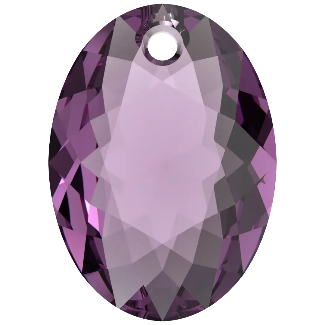 Serinity pendants Elliptic Cut (6438) in Amethyst are multi faceted crystals with a thread hole at the top enabling them to be attached to a chain or finding to create a piece of jewellery. Serinity Elliptic Cut crystal pendants have an oval shape with facets on both sides to capture and reflect the light magnificently.