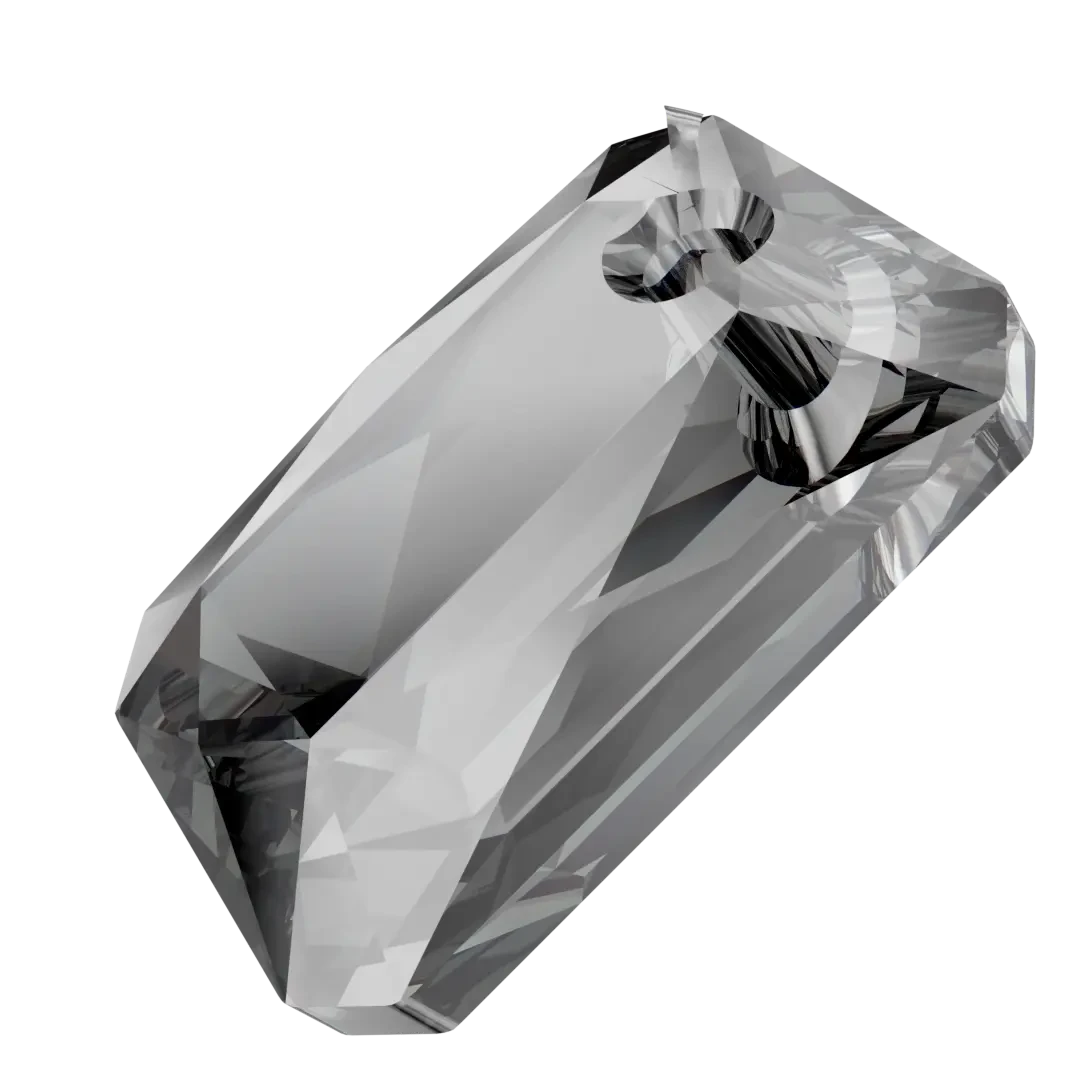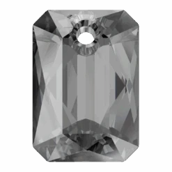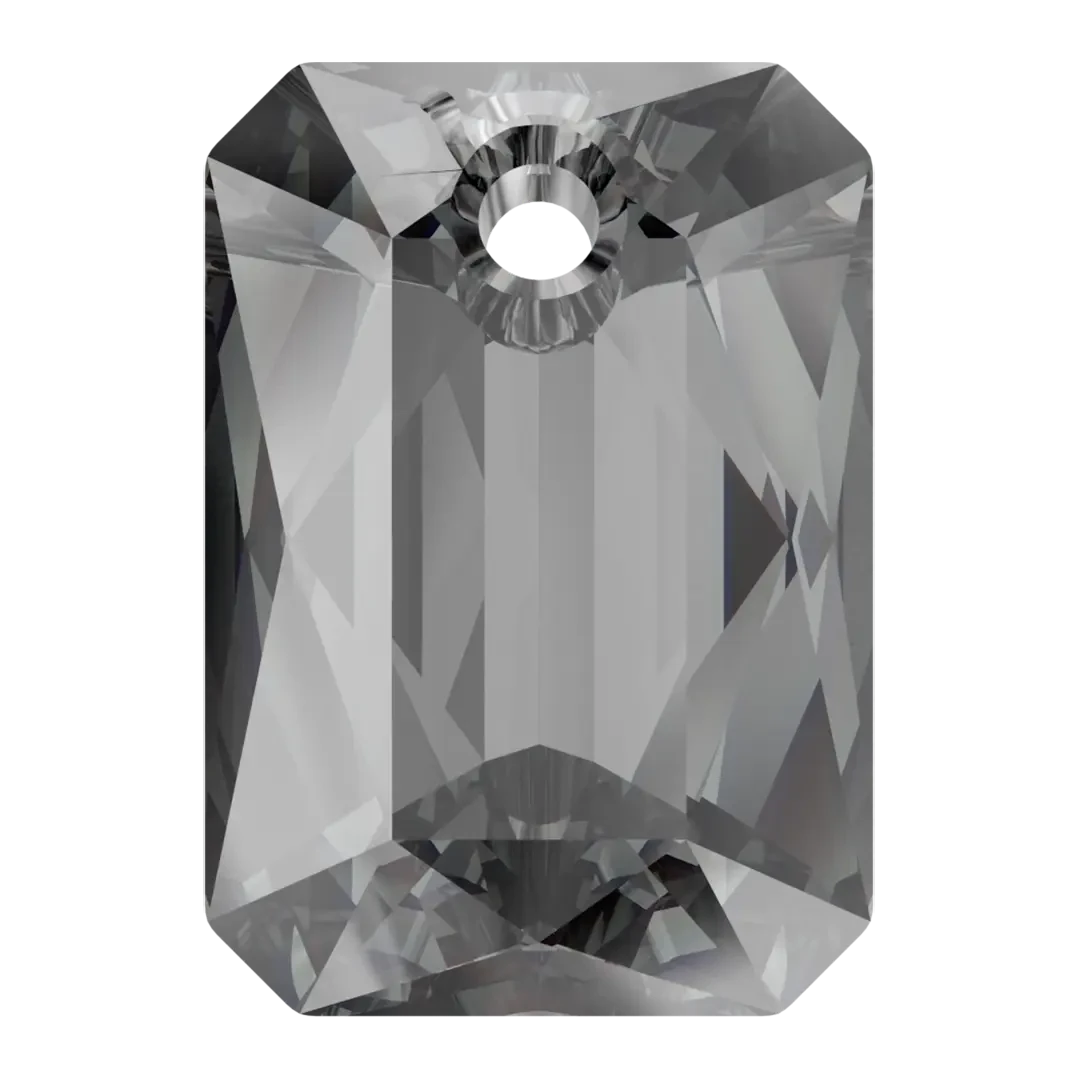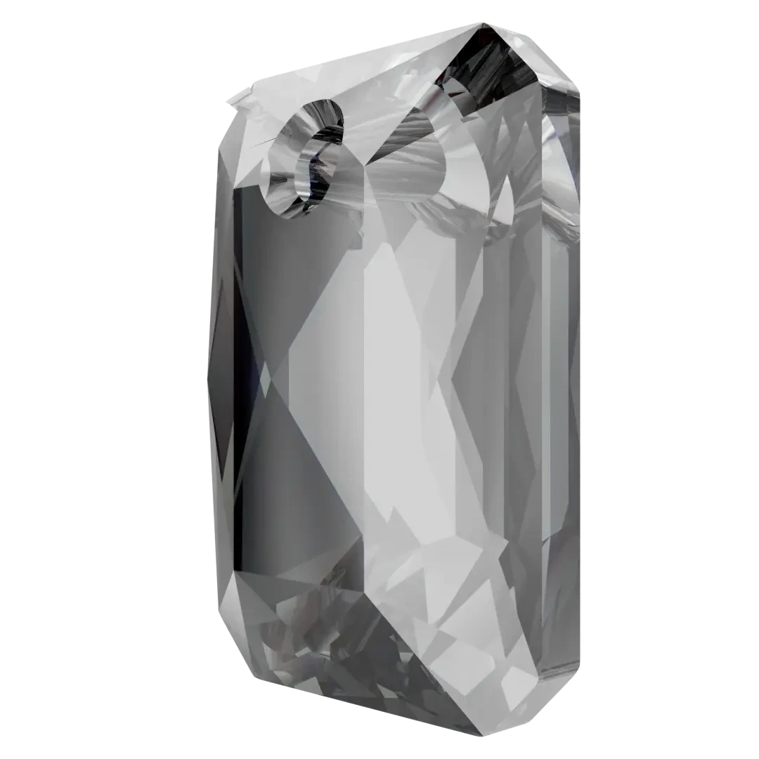 Serinity pendants Emerald Cut (6435) in Crystal Silver Night are multi faceted crystals with a thread hole at the top enabling them to be attached to a chain or finding to create a piece of jewellery. Serinity Emerald Cut crystals are crafted to resemble the shape of a precious emerald gemstone, featuring a rectangular shape with cut corners. Its flat top surface is typically faceted, resulting in a distinctive step-like pattern. The Emerald Cut is renowned for its refined and sophisticated look, and it is frequently utilized in luxury jewellery and high-fashion creations.