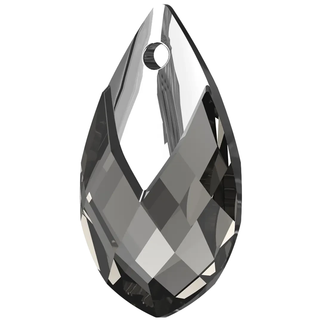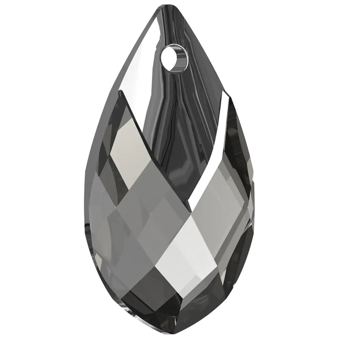 Serinity pendants Metallic Cap Pear (6565) in Crystal are multi faceted crystals with a thread hole at the top enabling them to be attached to a chain or finding to create a piece of jewellery. Serinity Metallic Cap Pear shaped pendant offers a modern twist on a classic design. Its unique combination of a pear-shaped crystal and a metallic cap creates a contemporary and edgy look that is sure to stand out. This pendant eliminates the need for separate metal bails, making it a convenient and appealing choice for jewellery designers looking for a sleek and streamlined design.