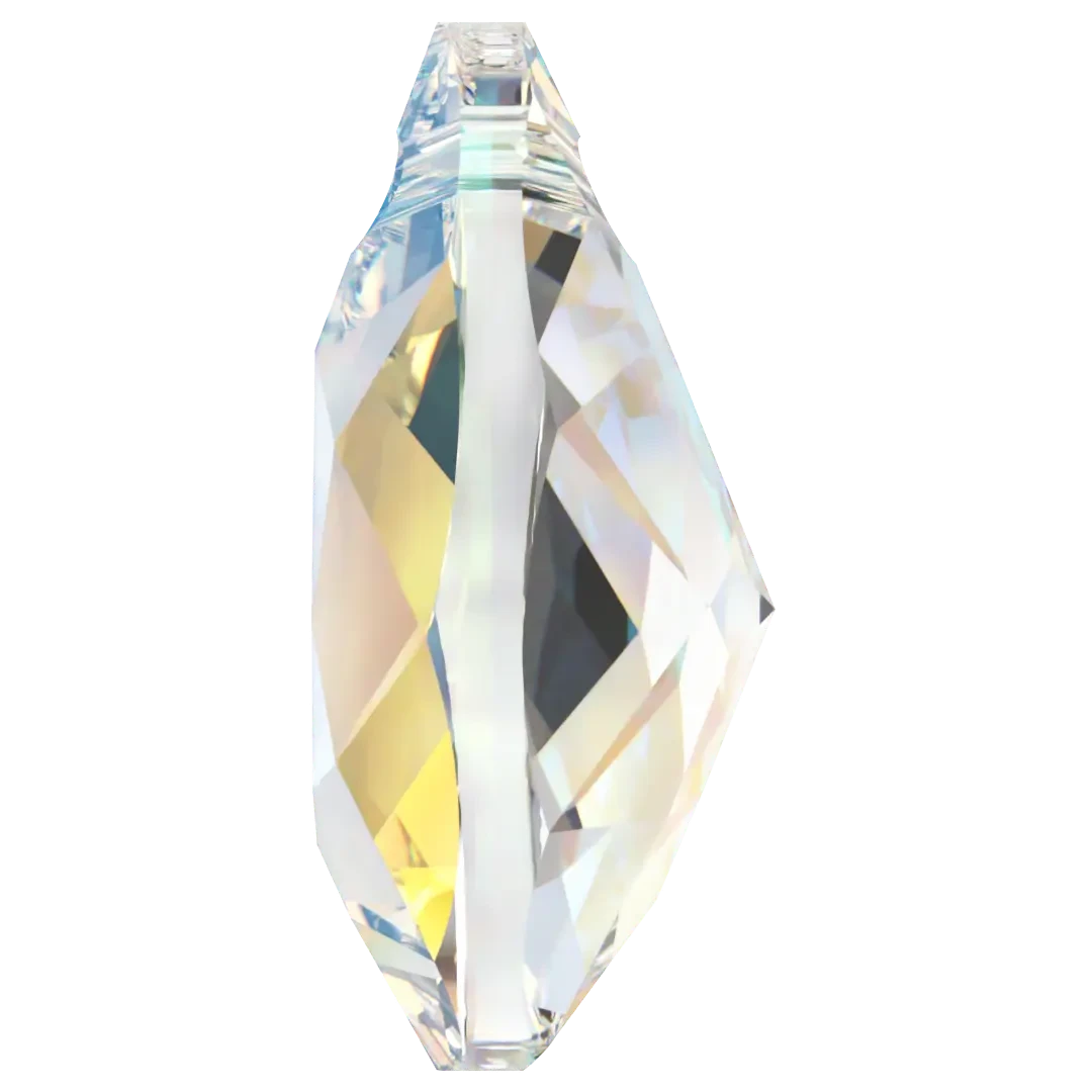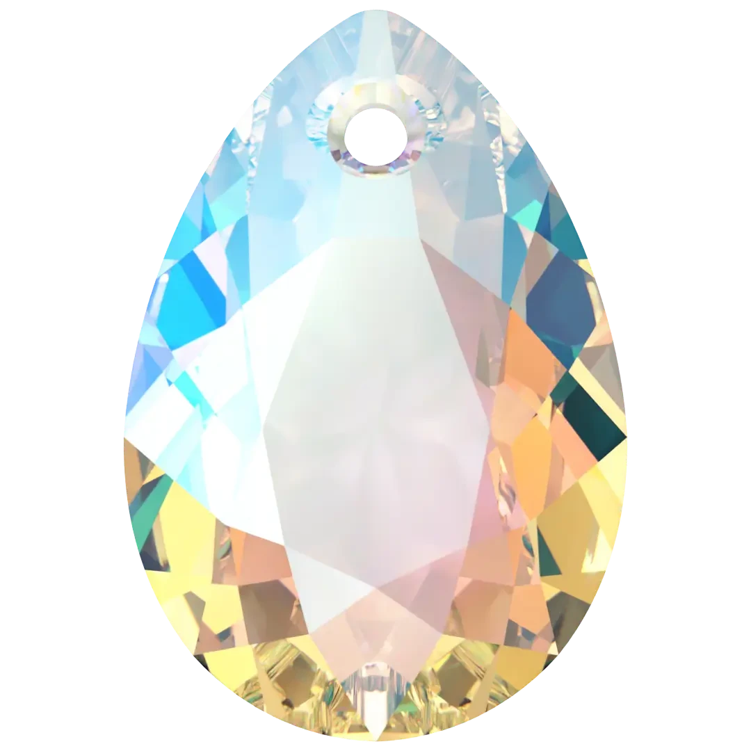 Serinity pendants Pear Cut (6433) in Crystal Shimmer are multi faceted crystals with a thread hole at the top enabling them to be attached to a chain or finding to create a piece of jewellery. Serinity Pear Cut shaped crystals feature a tapered traditional pear shape with a rounded bottom and a pointed top, resulting in a symmetrical and elegant appearance. The crystal’s faceted surface is carefully cut to create a stunning and brilliant shine that sparkles from every angle.