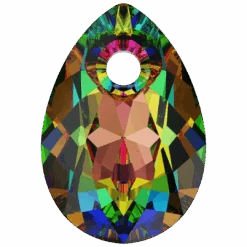 Serinity pendants Pear Cut (6433) in Crystal Vitrail Medium P are multi faceted crystals with a thread hole at the top enabling them to be attached to a chain or finding to create a piece of jewellery. Serinity Pear Cut shaped crystals feature a tapered traditional pear shape with a rounded bottom and a pointed top, resulting in a symmetrical and elegant appearance. The crystal’s faceted surface is carefully cut to create a stunning and brilliant shine that sparkles from every angle.