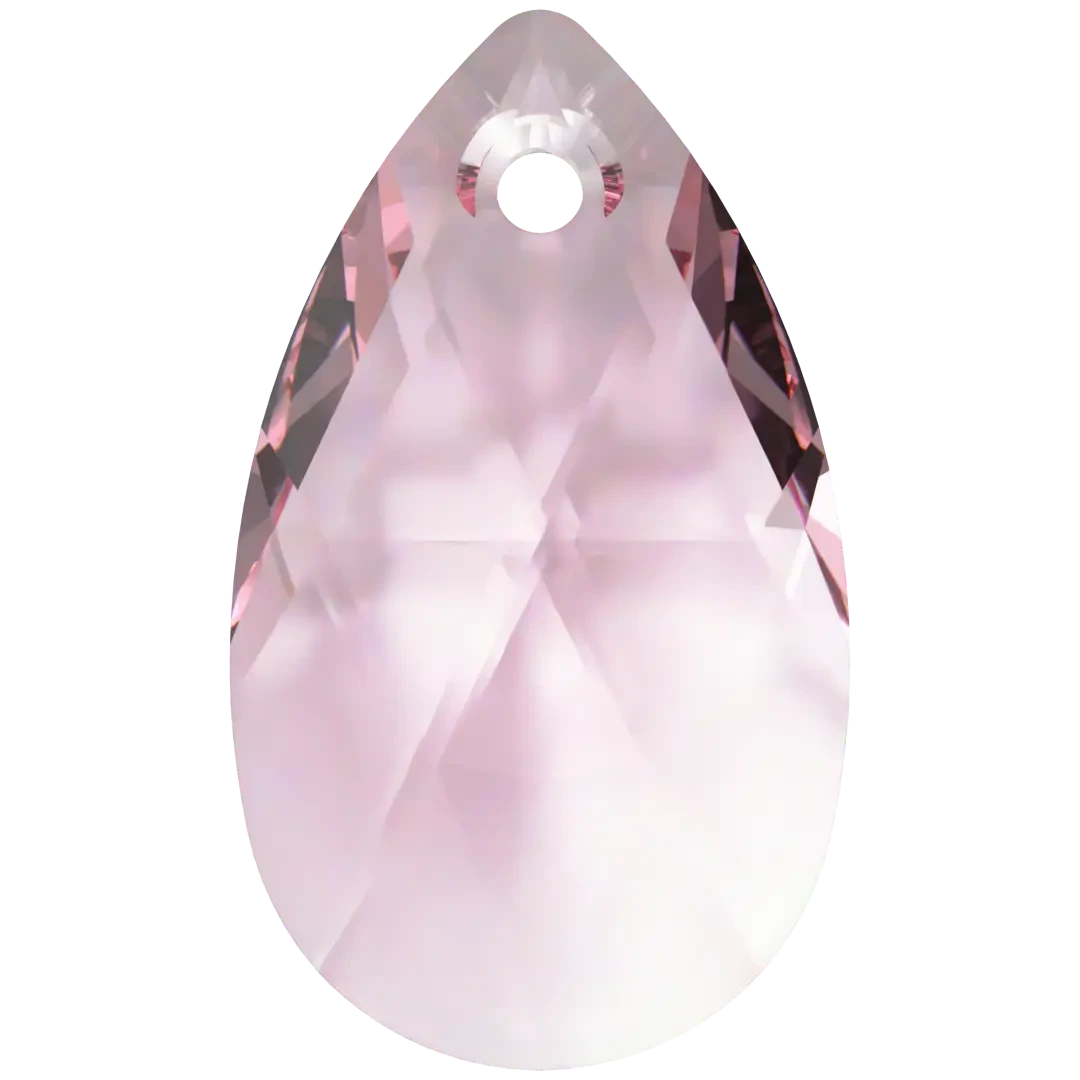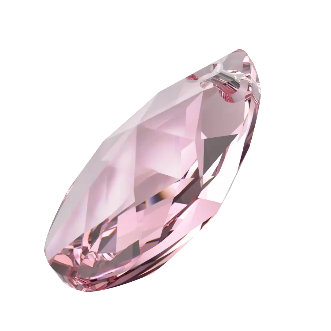 Serinity pendants Peardrop (6106) in Light Rose are multi faceted crystals with a thread hole at the top enabling them to be attached to a chain or finding to create a piece of jewellery. Serinity Peardrop shaped crystals feature a tapered traditional pear shape with a rounded bottom and a pointed top, resulting in a symmetrical and elegant appearance. The crystal’s faceted surface is carefully cut to create a stunning and brilliant shine that sparkles from every angle.