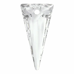 Serinity pendants Spike (6480) in Crystal are multi faceted crystals with a thread hole at the top enabling them to be attached to a chain or finding to create a piece of jewellery. Serinity Spike shaped pendant is a distinctive elongated triangle shape with a tapered, spike-like silhouette. Its unique shape makes it a versatile pendant that can be incorporated into a variety of jewellery designs, from edgy and rock-inspired to elegant and sophisticated.