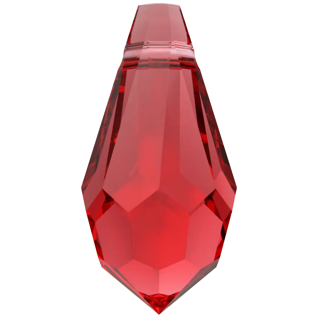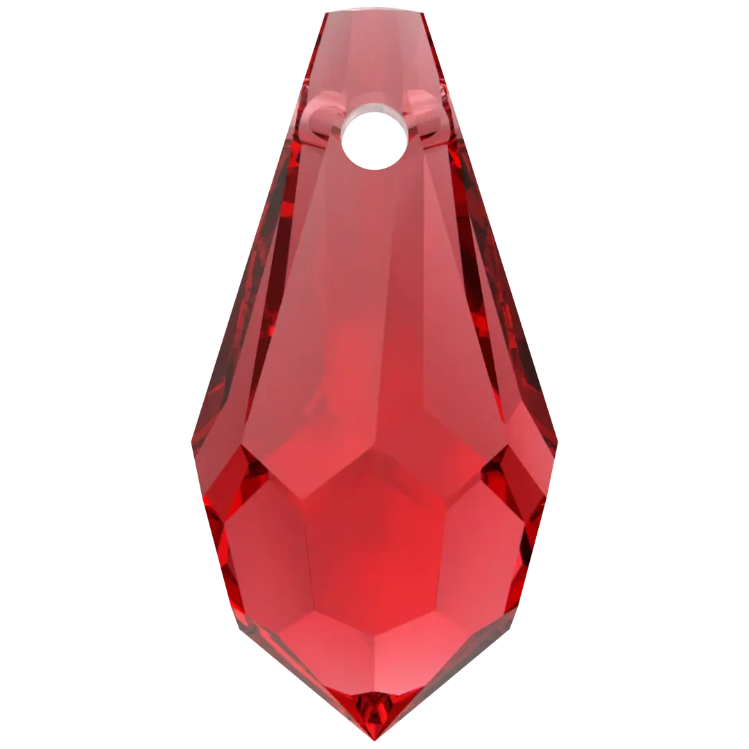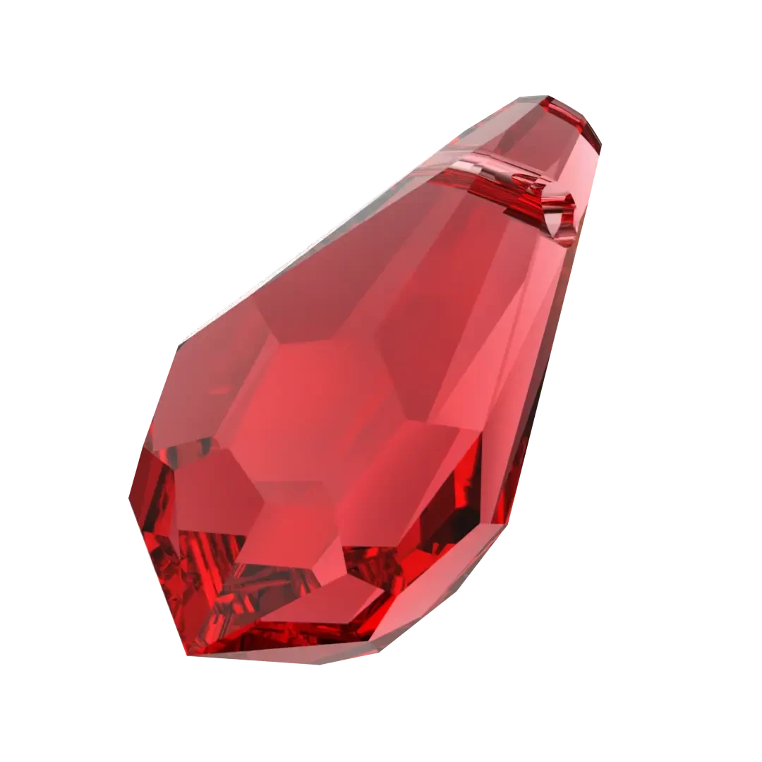 Serinity pendants Teardrop (6000) in Light Siam are multi faceted crystals with a thread hole at the top enabling them to be attached to a chain or finding to create a piece of jewellery. Serinity Teardrop stones are crystal components with a unique shape resembling a teardrop. These stones possess a slender apex and a broad base that tapers down to a delicate point, featuring symmetrical facets that reflect light in a magnificent manner.
