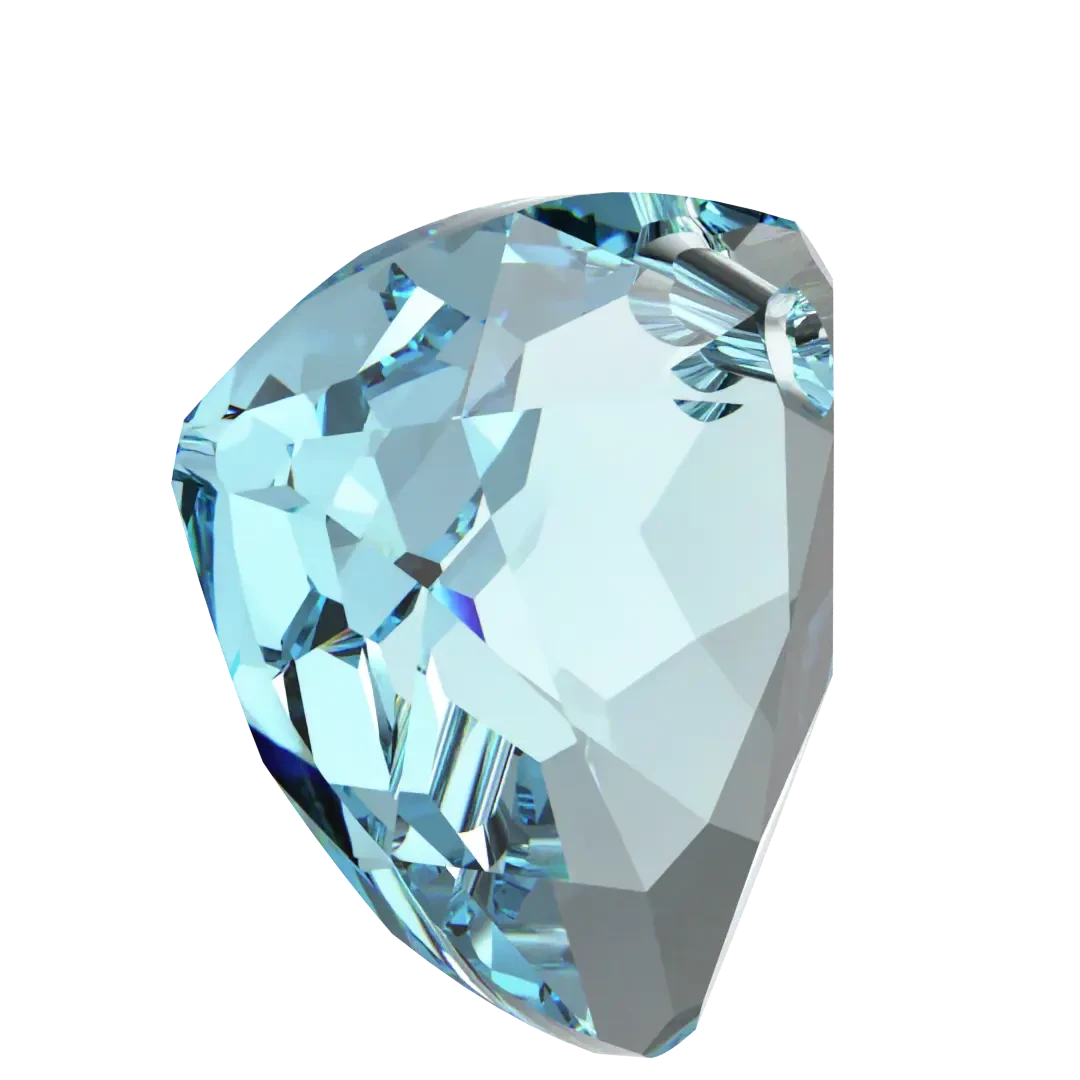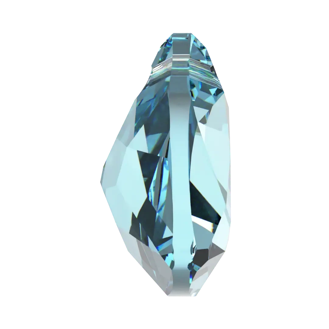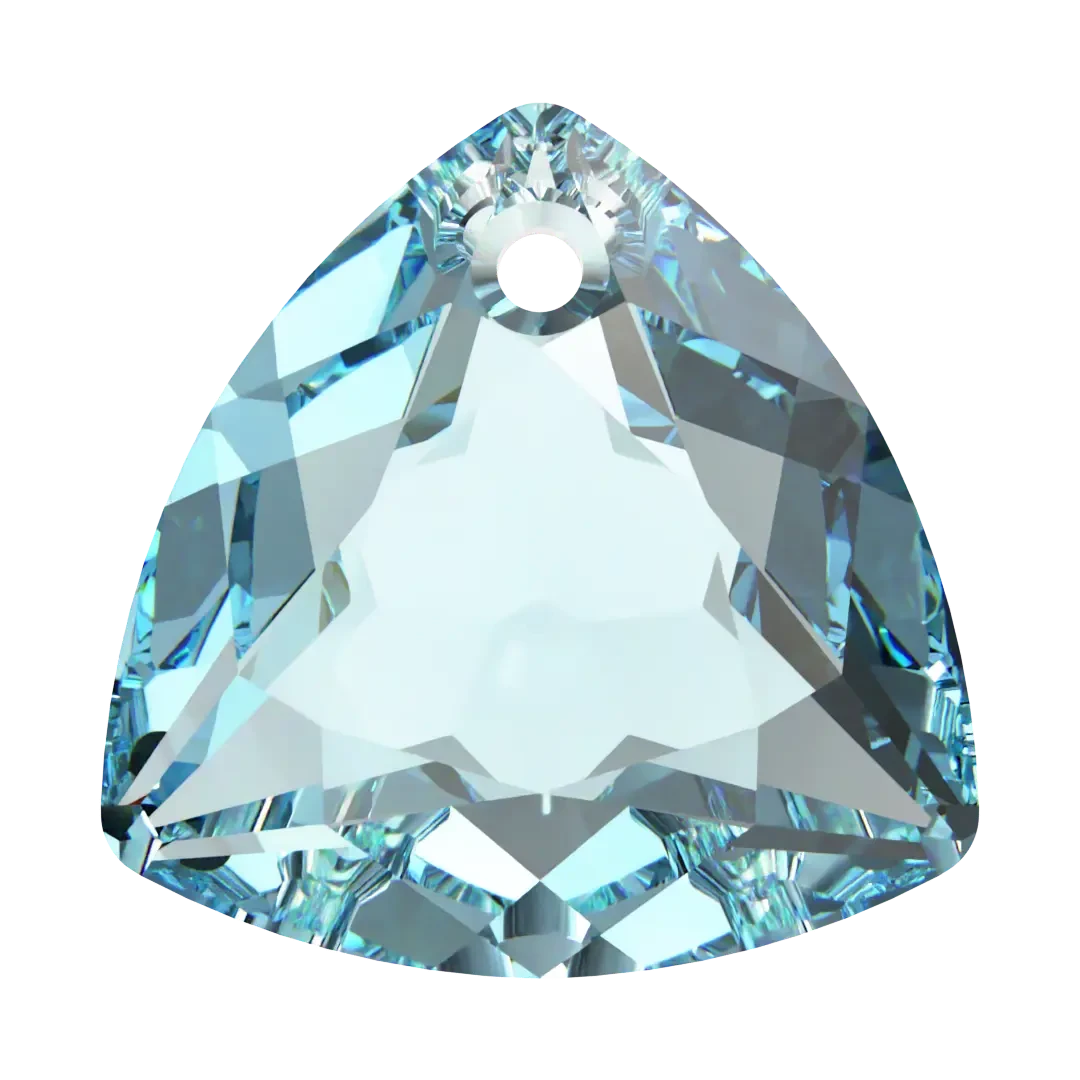 Serinity pendants Trilliant Cut (6434) in Aquamarine are multi faceted crystals with a thread hole at the top enabling them to be attached to a chain or finding to create a piece of jewellery. Serinity Trilliant Cut refers to a specific type of faceting applied to a crystal. This cut creates a triangular shape with rounded edges and facets arranged in a symmetrical pattern. The result is a brilliant and sparkling crystal with a unique and distinctive shape that is popular in jewellery designs.