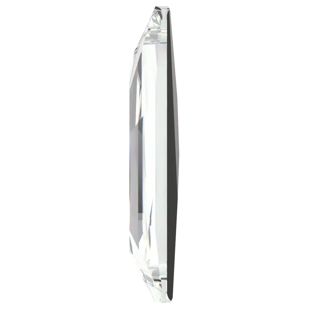 Serinity sew on crystals Cosmic Baguette (3255) in Crystal are loose flat backed crystals that come with a thread hole, enabling the crystals to be sewn onto fabric. Serinity Cosmic Baguette shaped crystals feature a rectangular shape with a raised centre that creates a 3D effect. The crystal surface is intricately cut with multiple facets, resulting in a dazzling sparkle. The Cosmic shape is designed to resemble a cosmic explosion or a small galaxy, making it a distinctive and captivating element in any design.