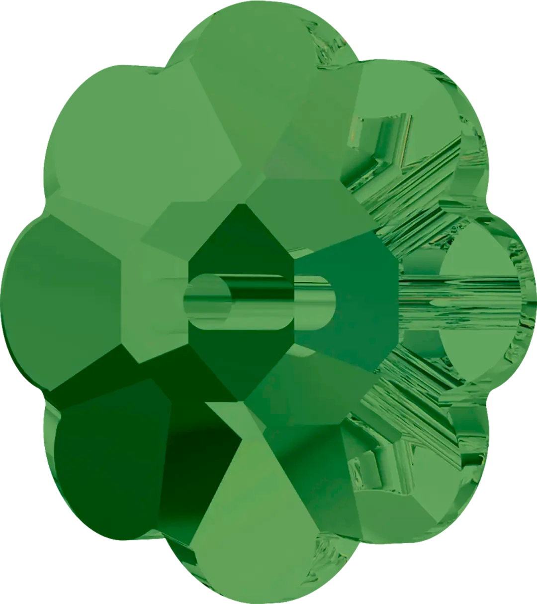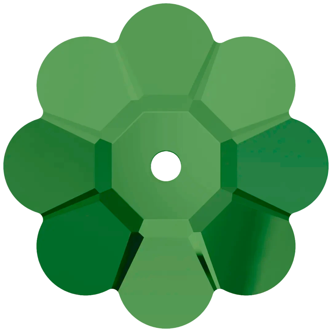 Serinity sew on crystals Daisy Spacer (3700) in Fern Green UNFOILED are loose flat backed crystals that come with a thread hole, enabling the crystals to be sewn onto fabric. Serinity Daisy Spacer sew-on crystals are floral in shape with multiple facets that reflect light in a dazzling way. This crystal is designed with a centre hole that allows it to be easily sewn onto fabric, making it perfect for adding a touch of glamour to clothing, accessories, and other textiles.
