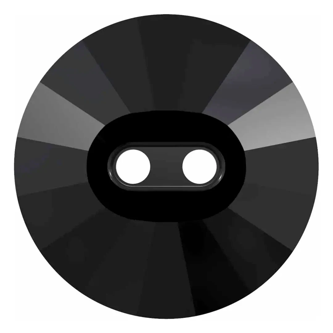 Serinity sew on crystals Rivoli Classic Button 2 Holes (3019) in Jet UNFOILED are loose flat backed crystals that come with thread holes, enabling the crystals to be sewn onto fabric. Serinity Rivoli Classic Button crystals are cut glass crystals with two evenly spaced holes in the centre of the crystal. They have specifically cut facets which emphasize the clarity and brilliance of the stone.