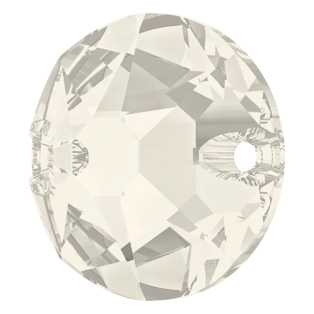 Serinity sew on crystals Round (3288) in Crystal Silver Shade are loose flat backed crystals that come with a thread hole, enabling the crystals to be sewn onto fabric. Serinity Round (2 Hole) sew on crystals are a circular crystal component that has two parallel holes positioned at the top and bottom of the stone. The sew-on has a flat back, which allows it to be easily attached to fabric or other materials, while its faceted front creates a sparkling and eye-catching effect.