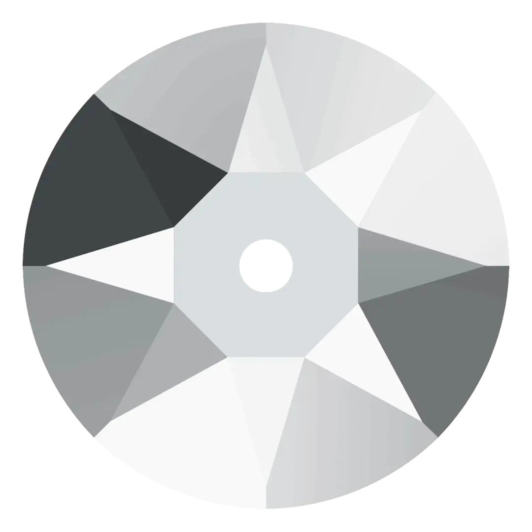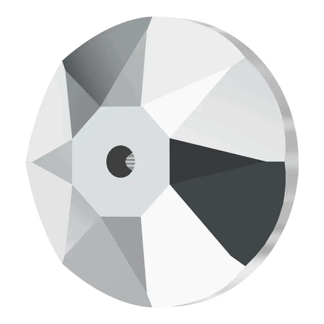 Serinity sew on crystals Round Lochrose (3188) in Crystal Light Chrome are loose flat backed crystals that come with a thread hole, enabling the crystals to be sewn onto fabric. Serinity Round Lochrose (One Hole) sew-ons have a unique shape with a flat back and a single hole in the centre, which makes them perfect for sewing onto fabrics and accessories. The rounded edges of the Lochrose design provide additional thread protection, ensuring that the crystals can be safely and securely attached to any type of material.