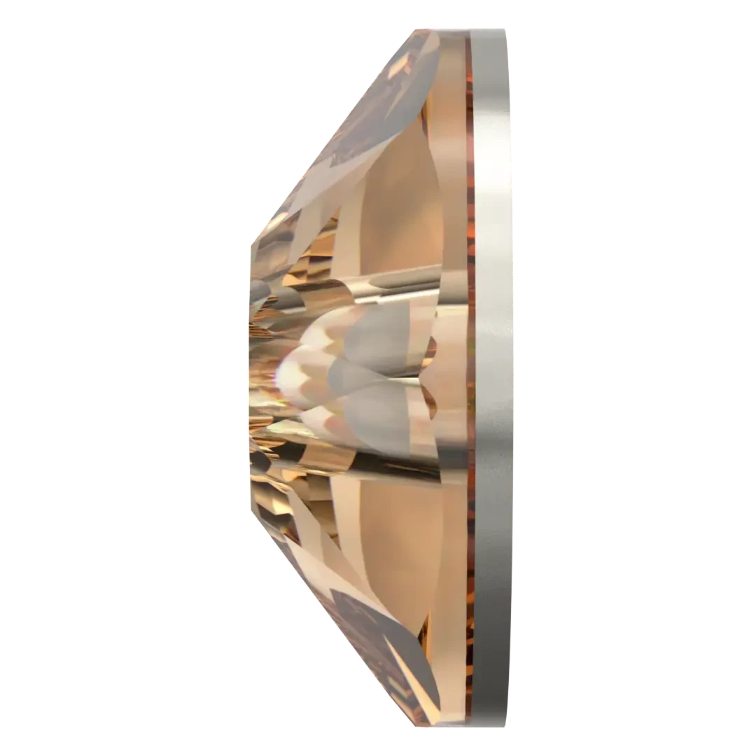 Serinity sew on crystals Round Lochrose (3188) in Light Colorado Topaz are loose flat backed crystals that come with a thread hole, enabling the crystals to be sewn onto fabric. Serinity Round Lochrose (One Hole) sew-ons have a unique shape with a flat back and a single hole in the centre, which makes them perfect for sewing onto fabrics and accessories. The rounded edges of the Lochrose design provide additional thread protection, ensuring that the crystals can be safely and securely attached to any type of material.