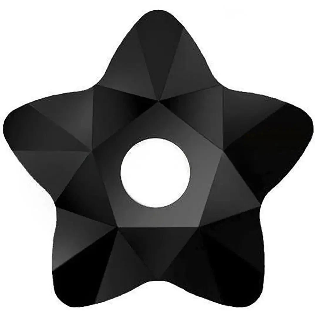 Serinity sew on crystals Star Flower (3754) in Jet UNFOILED are loose flat backed crystals that come with a thread hole, enabling the crystals to be sewn onto fabric. Serinity Star Flower shaped crystals are a unique and versatile shape that combines elements of both stars and flowers. The shape has five rounded points that can resemble a star or a flower depending on how it’s viewed.