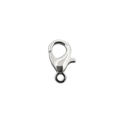 This silver plated Trigger Clasp measuring 13mm consists of a hook-shaped clasp with a spring-loaded “trigger” mechanism that opens and closes the clasp. The clasp is attached to one end of a piece of jewellery, while a jump ring or other connector is attached to the other end, allowing the jewellery to be easily fastened and unfastened. As this clasp is made of Plated metal, where a fine layer of silver has been bonded onto the brass base metal, over time and with excess use this layer may eventually wear away. All our plated metal findings are compliant with EU REACH regulations.
