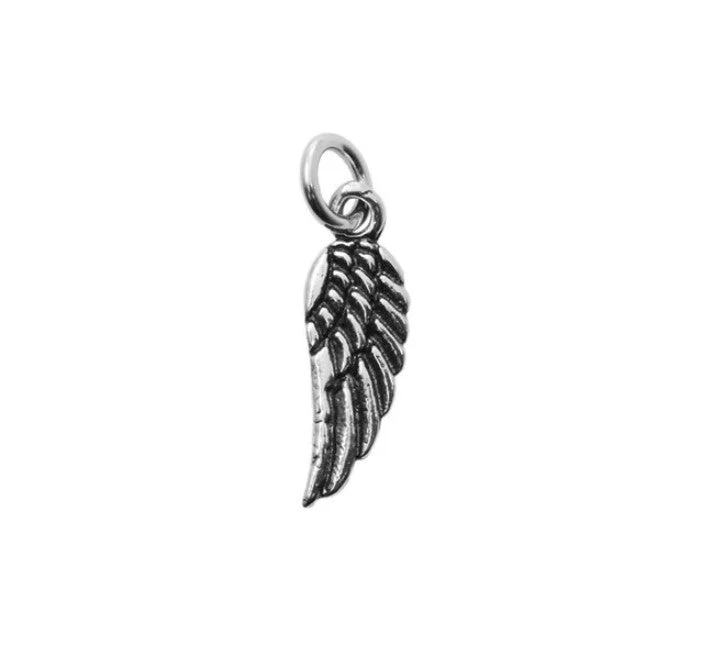 This Sterling Silver (925) Wing Charm measures 16x15mm and comes with a soldered round jump ring at the top, enabling the charm to be linked to a jewellery piece.