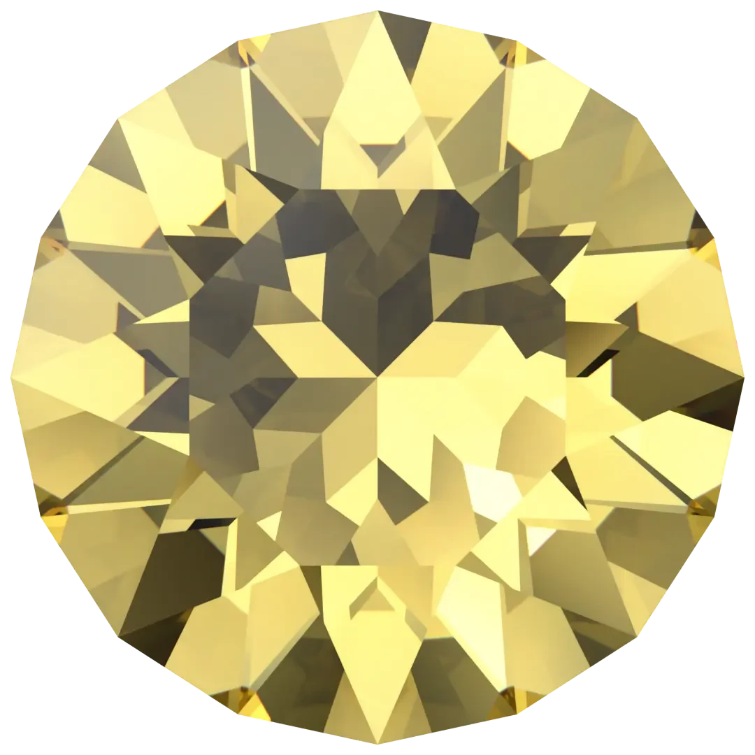 Swarovski chatons Round (1028 Xilion & 1088 Xirius) in Recreated Dark Jonquil are multi faceted pointed back crystals that are used with metal settings to create bespoke jewellery and embellishment designs. Round chatons are available in a wide range of sizes and colours and are used in a variety of applications such as jewellery, apparel, and accessories. The chatons can be set in bezels, prong settings or sewn onto fabrics, and can be used as standalone pieces or in combination with other elements to create stunning designs. Round chatons are a popular choice for designers and crafters who want to add a touch of glamour and sophistication to their projects.