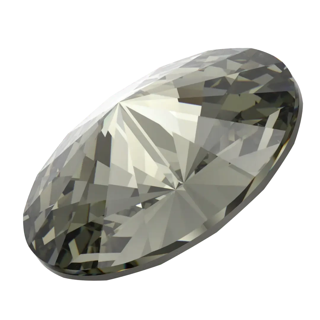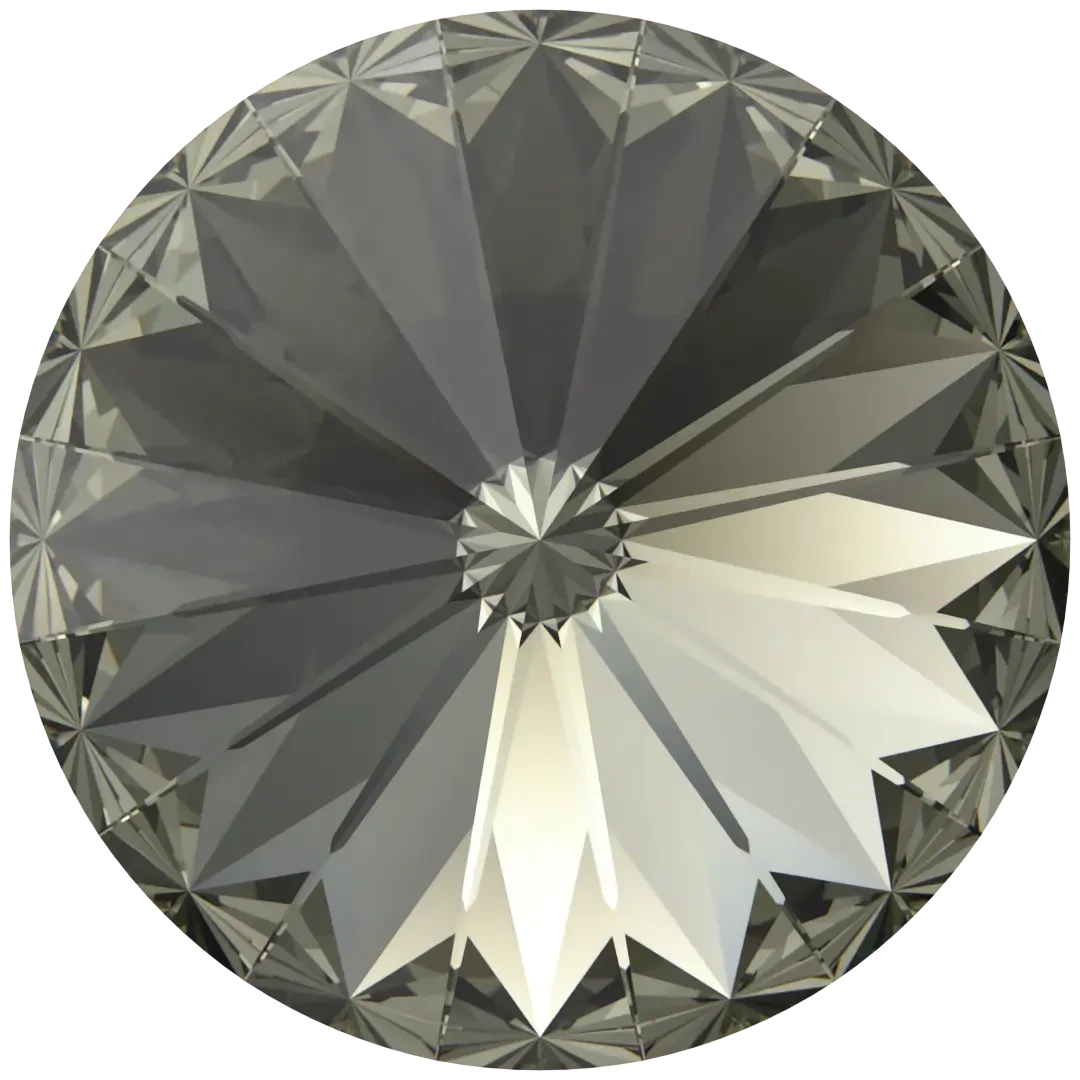 Swarovski chatons Rivoli (1122) in Black Diamond are multi faceted pointed back crystals that are used with metal settings to create bespoke jewellery and embellishment designs. Swarovski Rivoli shaped crystals are cut glass stones that have specifically cut facets which lead to a point. They are foiled on the underside of the crystal to reflect the light and enhance the colour of the stone.