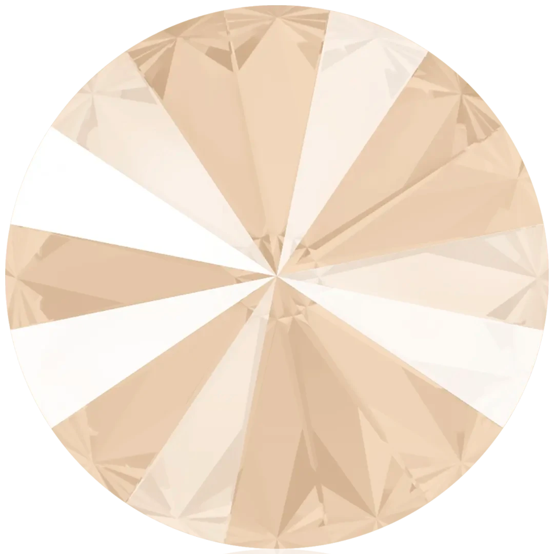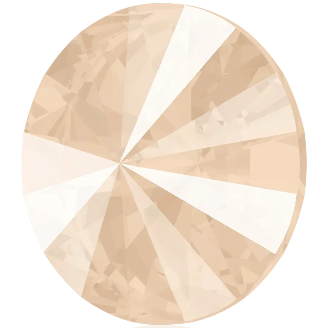 Swarovski chatons Rivoli (1122) in Crystal Ivory Cream Delite UNFOILED are multi faceted pointed back crystals that are used with metal settings to create bespoke jewellery and embellishment designs. Swarovski Rivoli shaped crystals are cut glass stones that have specifically cut facets which lead to a point. They are foiled on the underside of the crystal to reflect the light and enhance the colour of the stone.