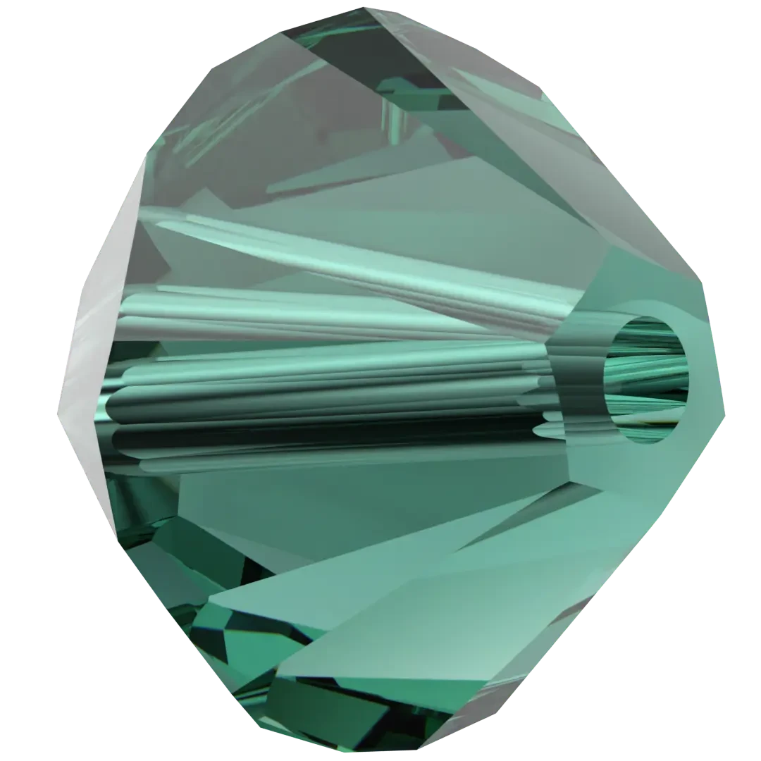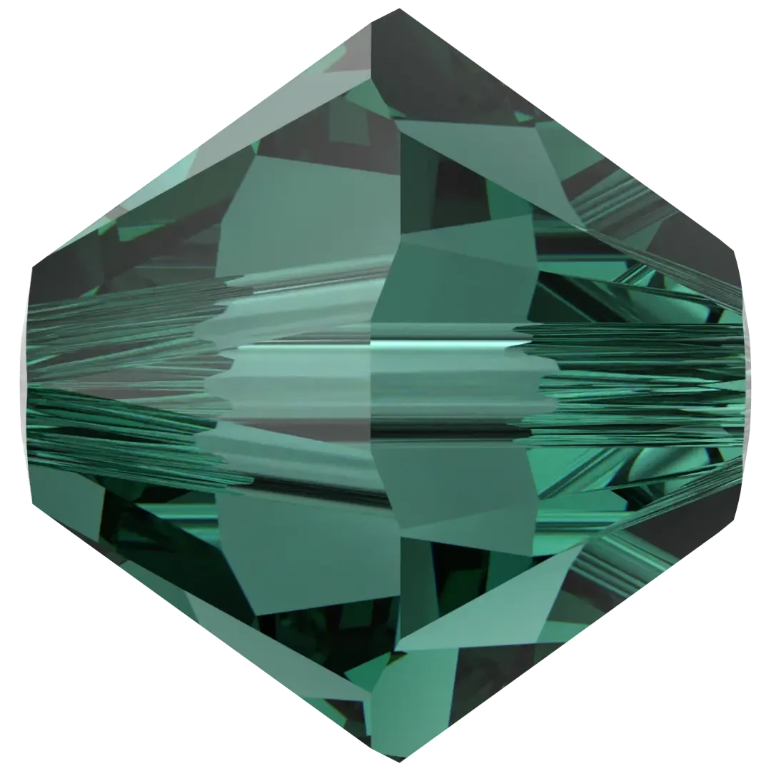 (5328) in Emerald have a smooth thread hole and are multi-faceted to reflect the light, making them perfect to create bespoke designs. Swarovski Bicone