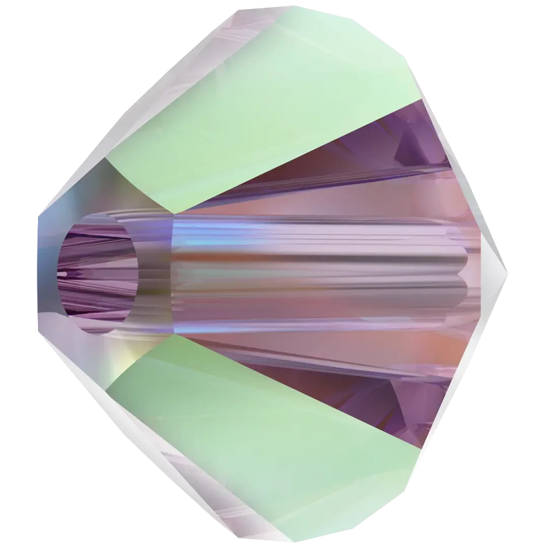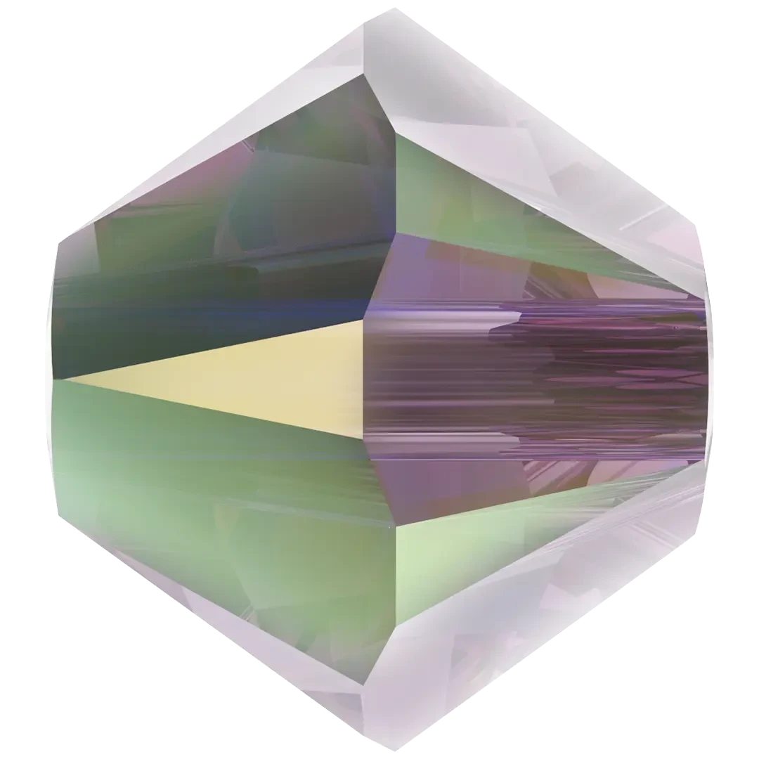 Iris AB 2X is a soft and delicate shade of purple with blue undertones, named after the beautiful flower of the same name. It can also be described as a pale or light lavender colour. Iris is a subtle and calming colour that is often associated with femininity, grace, and elegance. It is a popular colour for weddings and other formal occasions, as well as for clothing and accessories. The AB (Aurora Borealis) effect is an iridescent coating that covers the top of the crystal, making it shimmer like a rainbow. The base colour of the crystal can still be seen underneath but there is a noticeable pink and blue shine to it as it hits the light. “2X” is where the coating is on both sides. “2X” is where the coating is on both sides.