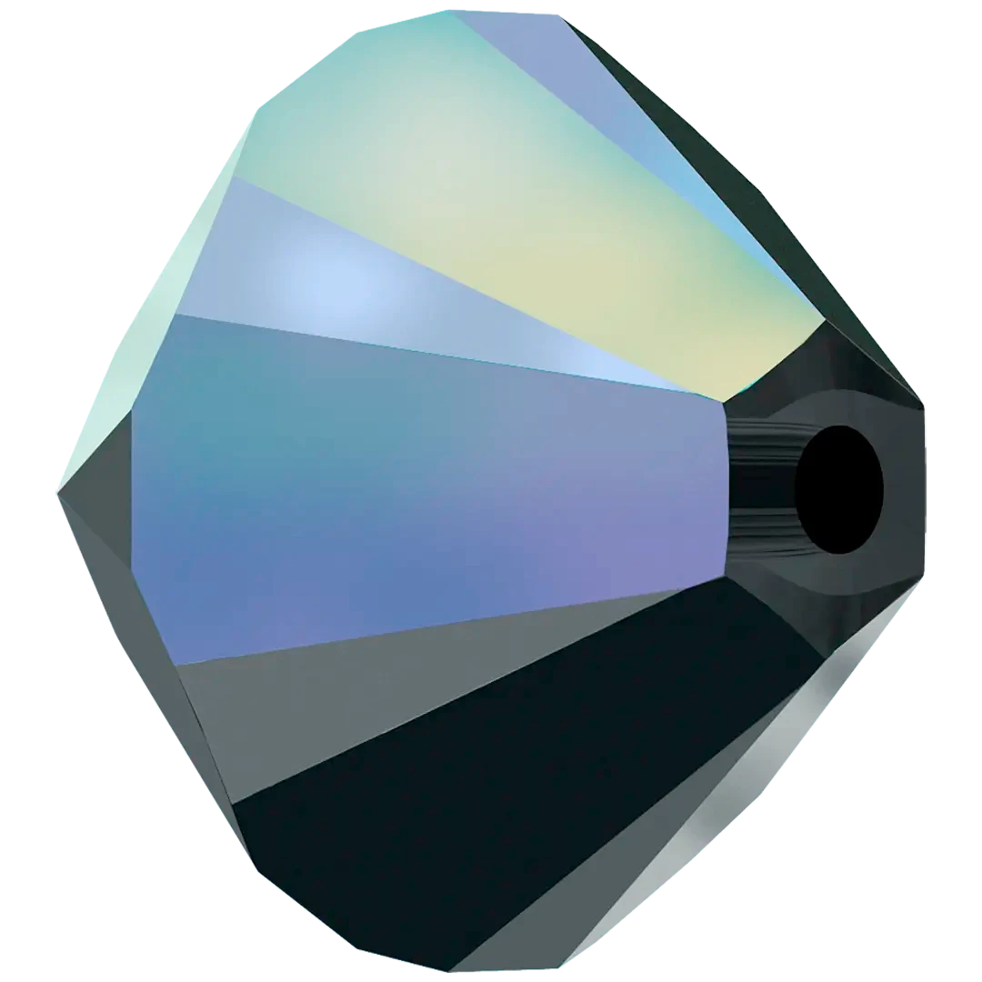 (5328) in Jet AB 2X have a smooth thread hole and are multi-faceted to reflect the light, making them perfect to create bespoke designs. Swarovski Bicone
