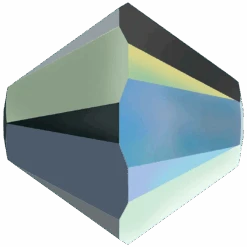 beads are cylindrical in shape and taper at both ends to form a bi-conical shape. The tapered multi-faceted shape of bicone