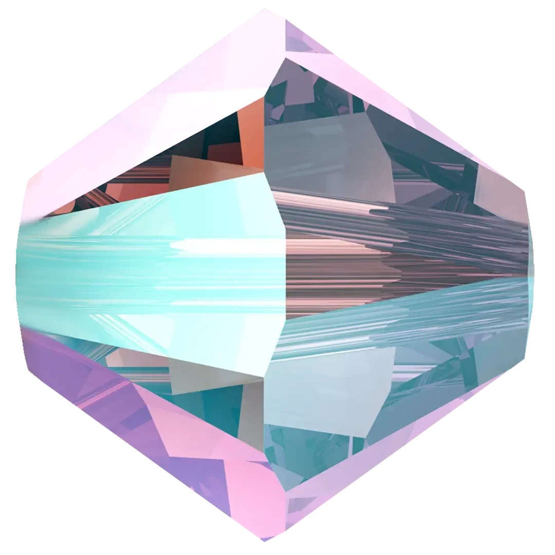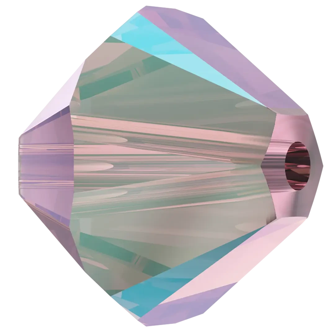(5328) in Light Amethyst Shimmer 2X have a smooth thread hole and are multi-faceted to reflect the light, making them perfect to create bespoke designs. Swarovski Bicone
