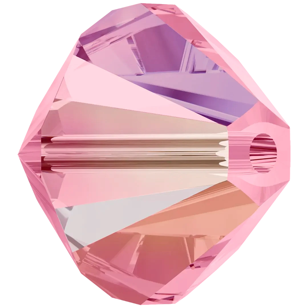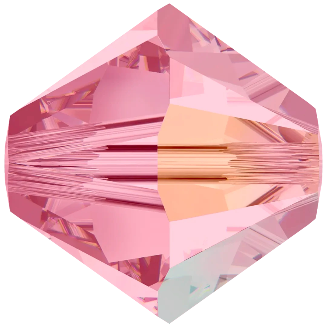(5328) in Light Rose AB have a smooth thread hole and are multi-faceted to reflect the light, making them perfect to create bespoke designs. Swarovski Bicone