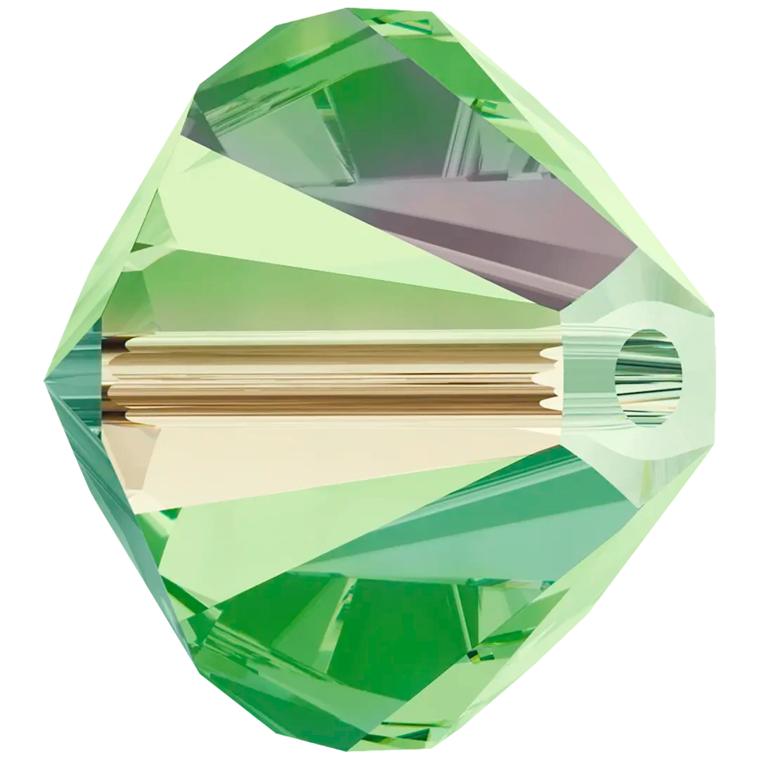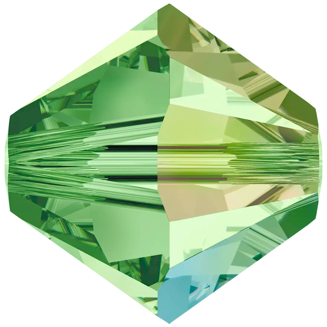 (5328) in Peridot AB have a smooth thread hole and are multi-faceted to reflect the light, making them perfect to create bespoke designs. Swarovski Bicone