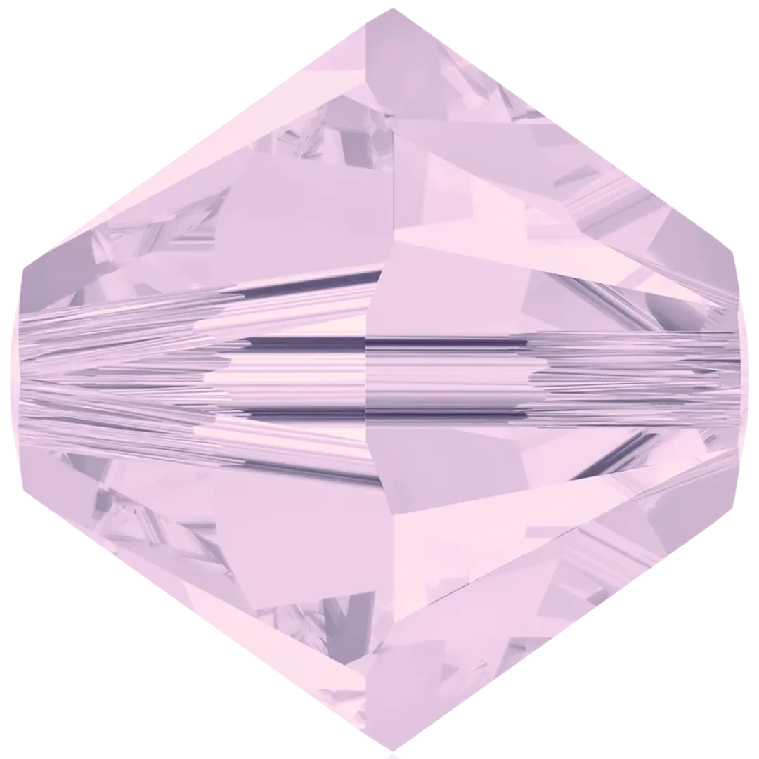 Swarovski crystal beads Xilion Bicone (5328) in Rose Water Opal have a smooth thread hole and are multi-faceted to reflect the light, making them perfect to create bespoke designs. Swarovski Bicone beads are cylindrical in shape and taper at both ends to form a bi-conical shape. The tapered multi-faceted shape of bicone beads adds texture, dimension and sparkle to jewellery and bespoke designs.