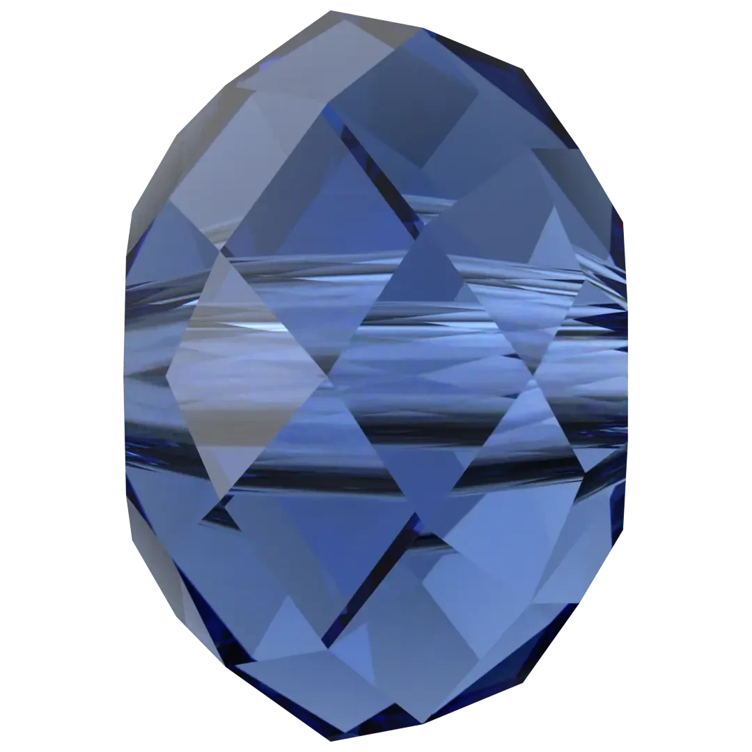 Swarovski crystal beads Briolette (5040) in Recreated Dark Sapphire have a smooth thread hole and are multi-faceted to reflect the light, making them perfect to create bespoke designs. Swarovski Briolette shaped beads are shaped like a doughnut, with a round, flat shape and a hole in the center. Their design makes them a versatile choice for a variety of jewellery making projects. They can be strung together to create simple yet elegant necklaces and bracelets, or used as accents in more complex designs. Briolette beads also pair well with other Swarovski crystal beads and components, allowing designers to create unique and cohesive pieces.