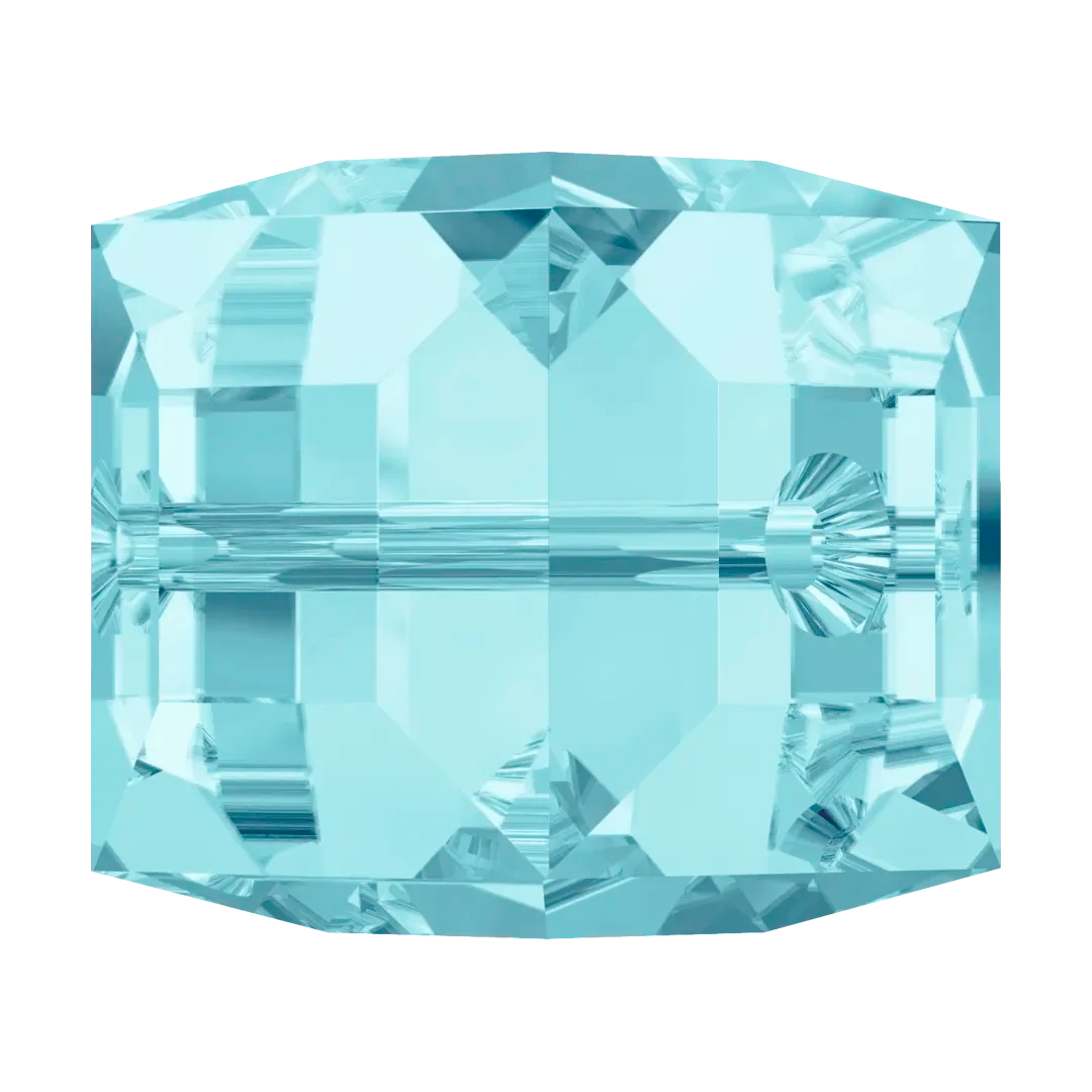 Swarovski crystal beads Cube (5601) in Aquamarine have a smooth thread hole and are multi-faceted to reflect the light, making them perfect to create bespoke designs. Swarovski Cube bead is a square-shaped crystal bead with precisely cut and polished sides that create a mesmerizing interplay of light and colour. The sharp edges and flat surfaces of this versatile component make it perfect for adding a modern touch to both classic and contemporary jewellery designs.