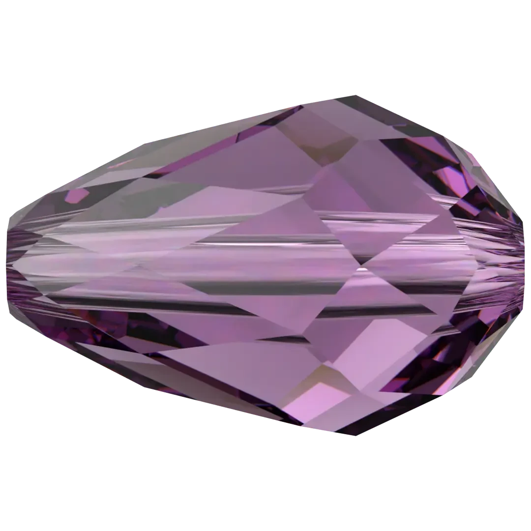 Swarovski crystal beads Drop (5500) in Amethyst have a smooth thread hole and are multi-faceted to reflect the light, making them perfect to create bespoke designs. Swarovski Drop shaped crystals are traditional drop in shape with a rounded bottom and a pointed top. They have a symmetrical shape with a faceted surface that creates a brilliant shine and sparkle.