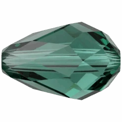 Swarovski crystal beads Drop (5500) in Emerald have a smooth thread hole and are multi-faceted to reflect the light, making them perfect to create bespoke designs. Swarovski Drop shaped crystals are traditional drop in shape with a rounded bottom and a pointed top. They have a symmetrical shape with a faceted surface that creates a brilliant shine and sparkle.